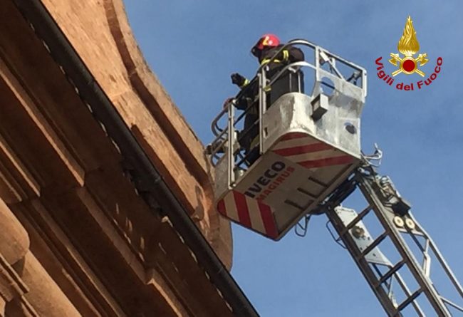 Cadono calcinacci su corso Matteotti a Jesi. A perdere pezzi, la chiesa di San Giovanni. È stato necessario l’intervento dei vigili del fuoco per mettere in sicurezza la facciata. È accaduto intorno alle 13 di questa mattina. Utilizzando l’autoscala, i vigili del fuoco hanno verificato tutta la facciata che dà sulla pubblica via, rimuovendo le parti di immediato pericolo. Nessuna persona coinvolta.