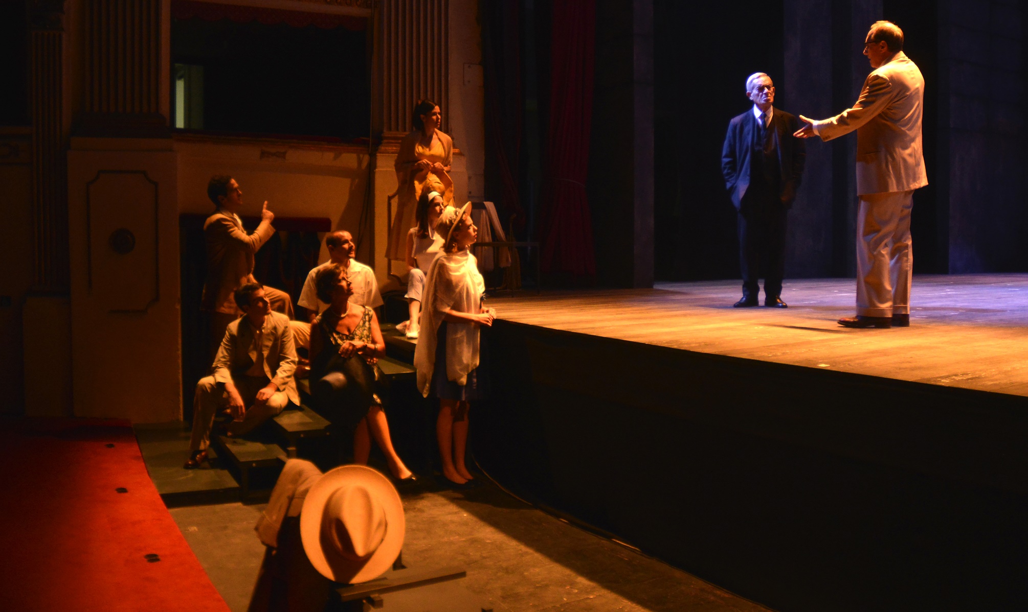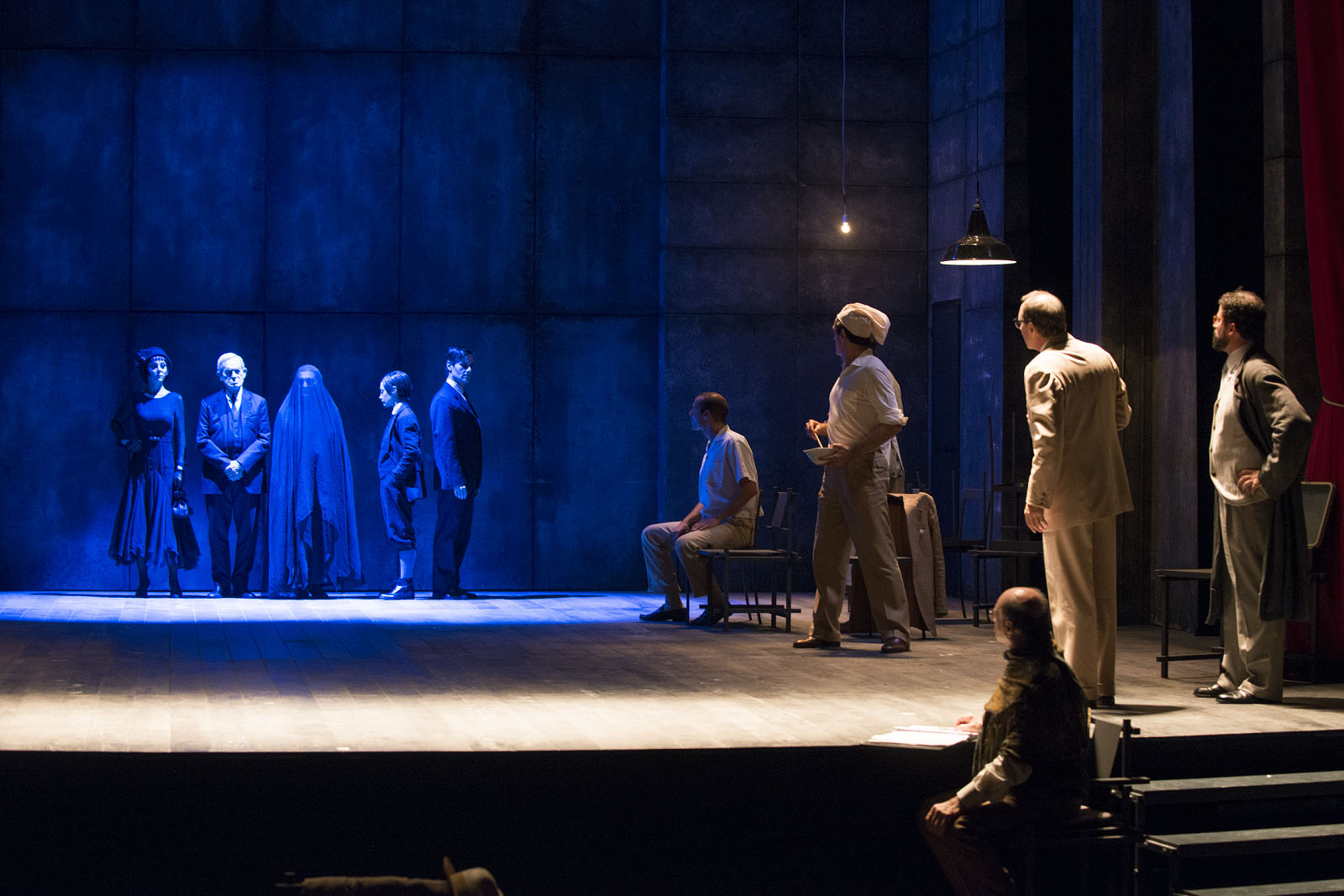 Lo spettacolo. Sei personaggi in cerca d’autore è il testo che più rappresenta la riflessione sulla natura stessa del teatro nella drammaturgia del Novecento. Anticipa l’arte concettuale, l’esistenzialismo, lo straniamento. Rappresentato per la prima volta nel 1921 e accolto con esito incerto, è il dramma più famoso di Luigi Pirandello. Il regista Luca De Fusco si è lasciato ispirare dai personaggi: data la loro vicenda – così piena di ricordi, di visioni, di particolari di splendente importanza – la trama sembra prestarsi più ad essere rappresentata attraverso l’occhio visionario del cinema che tramite quello del teatro. La scenografia dello spettacolo è basata su un grande muro sistemato sul fondo della scena. Questo muro è in realtà anche un grande schermo cinematografico.
