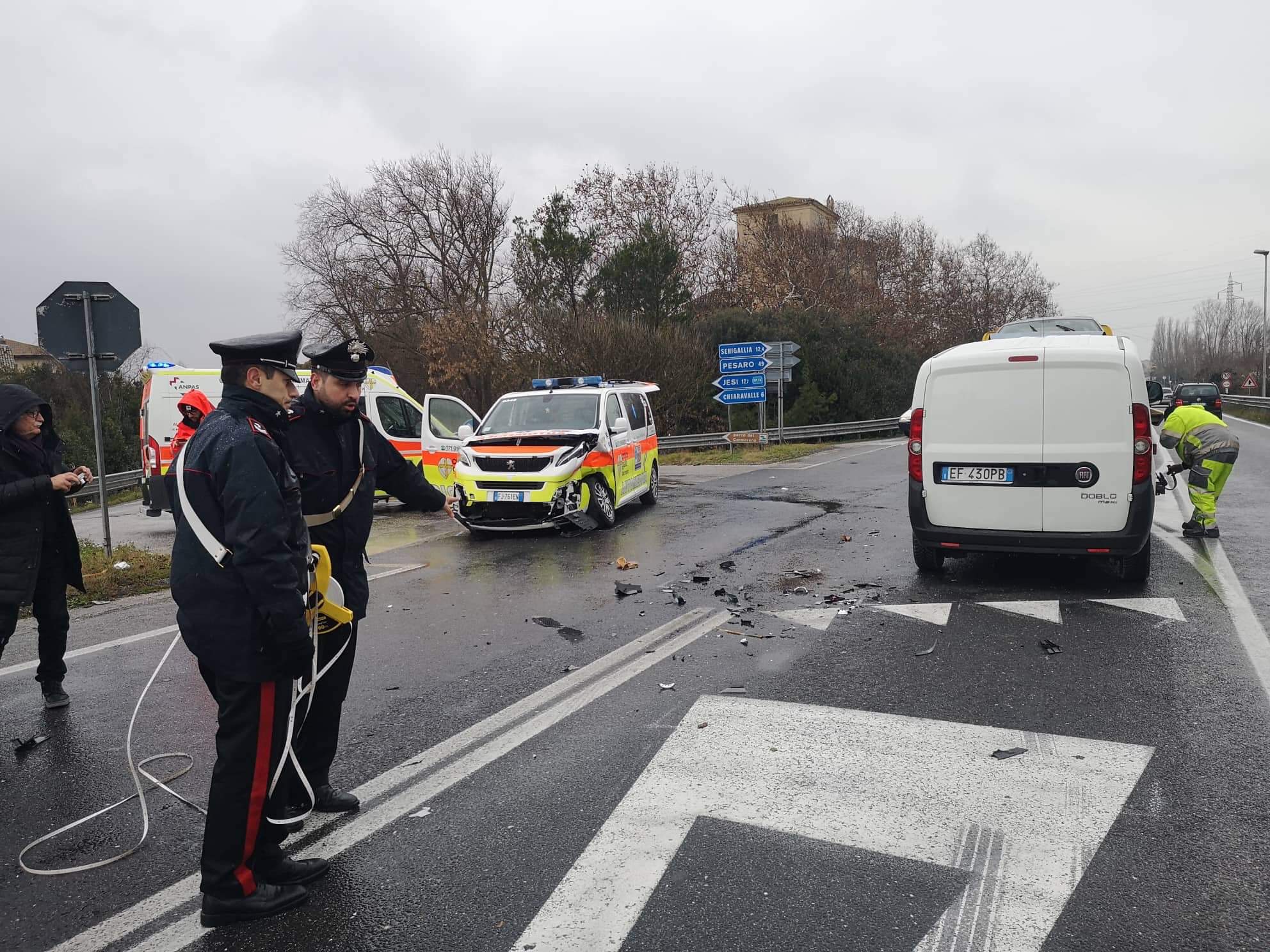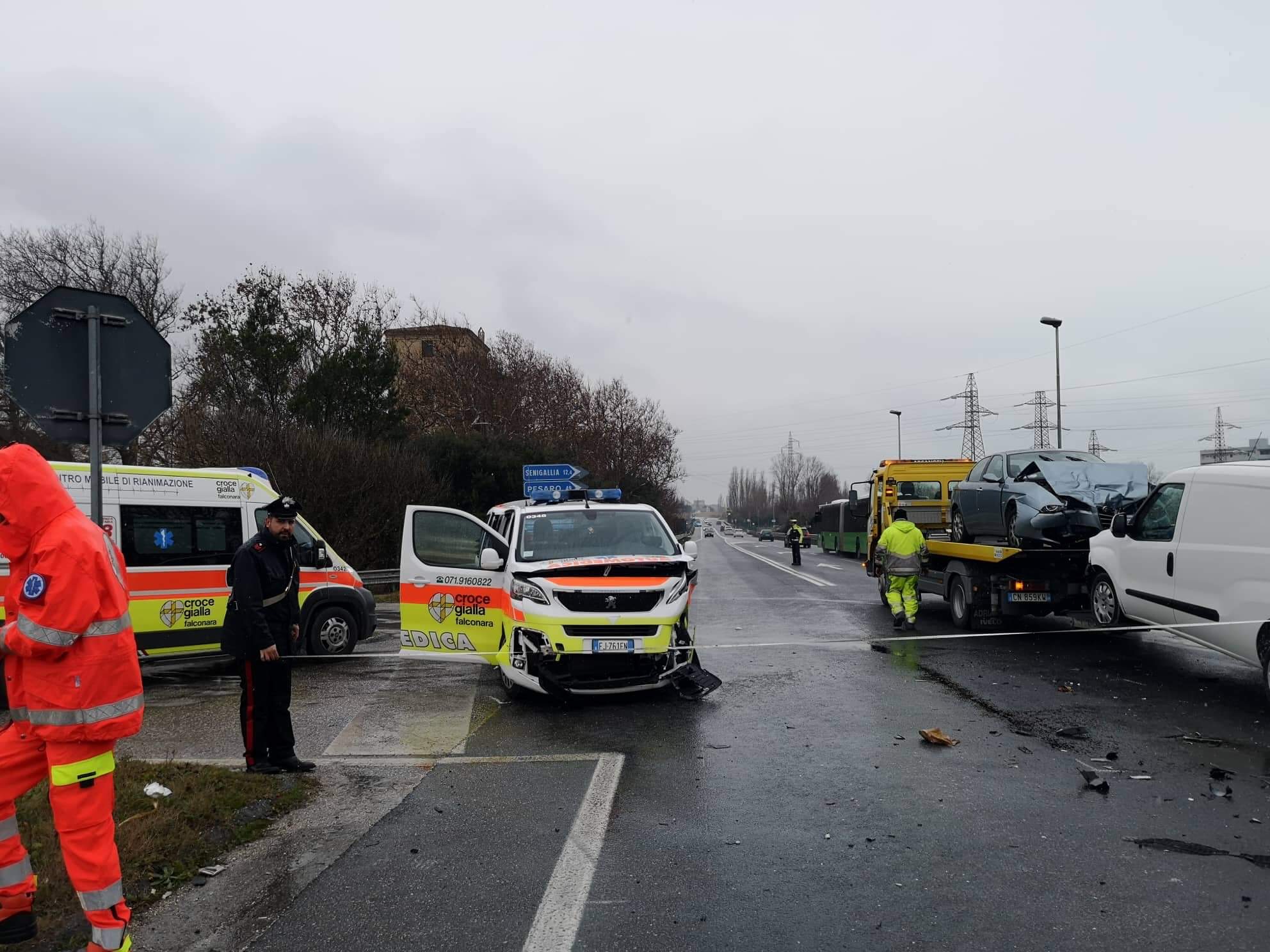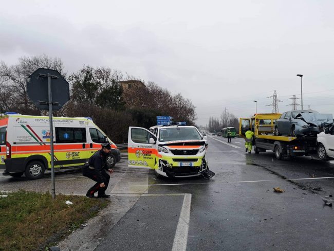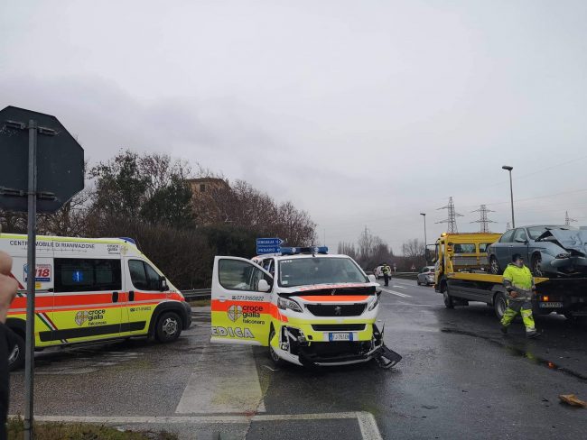 Automedica del 118 coinvolta in un incidente stradale con un’Alfa Romeo e una seconda vettura, stamattina a Falconara, lungo la Ss 16. Nell’urto violento è rimasto ferito in maniera non grave anche il medico a bordo del mezzo di soccorso sanitario insieme ad altri 4 feriti, accompagnati tutti all’ospedale di Torrette di Ancona, uno in eliambulanza. L’incidente è avvenuto intorno alle ore 10,30 circa, all’incrocio tra la Ss16 e la So 76 (nei pressi di Roccapriora). I vigili del fuoco hanno soccorso gli infortunati, hanno messo le vetture coinvolte nell’incidente di cui una perdeva gasolio. Per circa trenta minuti la Sp 76 e la Statale Adriatica sono rimaste chiuse al traffico. Sul posto anche le pattuglie dei carabinieri e della Polizia locale di Falconara
