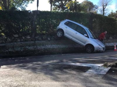 Incidente in via della Montagnola, auto si impenna finendo in bilico tra la vegetazione e l’asfalto. E’ accaduto poco prima delle 13 all’incrocio con via Palombare. Nessun ferito coinvolto nel sinistro, tanto che non è stato necessario l’intervento del 118. La vettura, una Volkswagen Polo, proveniva dal Pinocchio al momento dell’incidente. Con le ruote posteriori è finita oltre il muro che costeggia la strada. Traffico gestito dai vigili urbani.