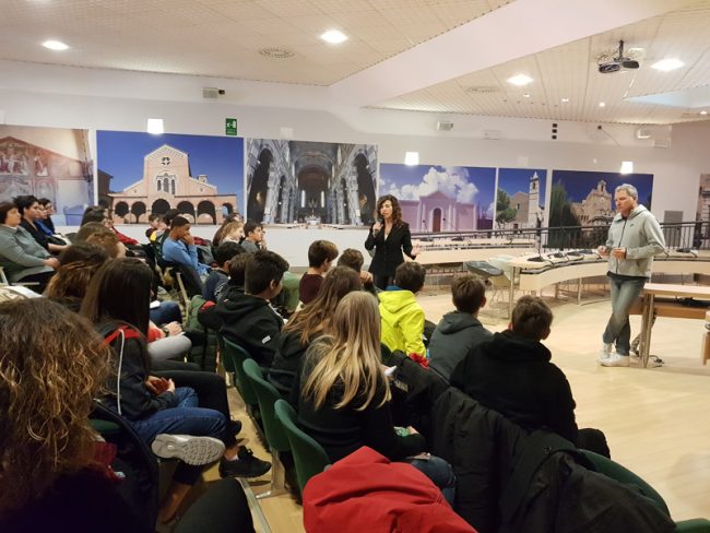 Durante l’incontro con gli studenti è stato proiettato il video realizzato dallo stesso Pagliari con le testimonianze di Alessia e dei suoi familiari, che hanno rappresentato il principale sostegno per la ragazza nel terribile periodo, durato circa un anno, durante il quale la 13enne ha subito gli effetti delle calunnie dei compagni. Luca Pagliari ha analizzato con i ragazzi i motivi che si nascondono dietro certe dinamiche, spiegando come siano tanti gli elementi che condizionano una corretta linea di azione: il giudizio degli altri, la scarsa percezione del rischio, le emozioni, la superficialità, la presunta occasionalità del fatto. Spesso i ‘bulli’ pensano che «per una volta non accade niente», senza immaginare che il «per una volta» in genere rappresenta l’inizio di un percorso. Valicata la famosa linea, ha spiegato il giornalista, diventa poi arduo tornare indietro.