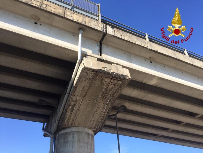 Stava attraversando in auto il ponte di via Sbrozzola, quello che scavalca la Ss16 al confine tra Osimo e Camerano, quando è rimasta imbottigliata e bloccata nel mezzo in un gregge di pecore che transitava in zona. Durante la sosta l’automobilista ha avvertito delle vibrazioni ed ha chiamato il Commissariato di Osimo e i vigili del fuoco sostenendo che il ponte si muoveva. E’ probabilmente che in questo contesto fossero le pecore a muovere la macchina. Dopo le 13.30 è scattato l’allarme. I vigili del fuoco di Osimo sono comunque intervenuti sul posto per svolgere un sopralluogo durato due ore con un loro fiunzionario tecnico ed hanno imposto la chiusura al traffico e a titolo precauzionale del ponte che in parte supera anche la ferrovia. In data 10 Settembre proprio i vigili del fuoco avevano già inviato una lettera ai Comuni di Camerano e di Osimo avvisandoli della presenza di alcuni elementi in cemento armato di un pilone del cavalcavia, insistente sul territorio di Camerano, che avevano bisogno di un intervento di manutenzione. Intervento ad oggi non risultava ancora effettuato. Il pilone appariva infatti solo trasennato. E’ improbabile il ponte, che collega i due centri commerciali CargoPier e Grotte Center, possa crollare ma da qui è maturata la scelta di bloccare la circolazione veicolare sopra l’infrastruttura viaria. Sul posto è arrivata una pattuglia della Polizia locale che ha provveduto a a chiudere il traffico, in attesa dell’arrivo delle transenne. Ora i tecnici competenti dei due Comuni dovranno svolgere ulteriori sopralluoghi per decidere il da farsi e l’opportunità di riaprire la strada.