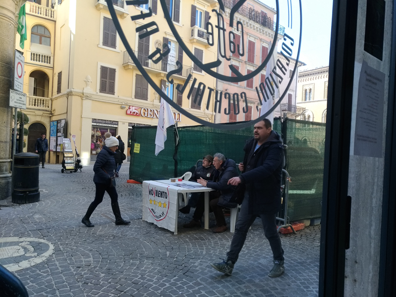 Partendo dalla battaglie propugnate in questo quinquennio dai 5Stelle, le linee programmatiche si articoleranno soprattutto sulla salvaguardia dell’ospedale di Osimo in attesa dell’inaugurazione del nuovo Inrca ed sul ripristino dei servizi, come quello di logopedia, al Poliambulatorio; sul rilancio del centro storico che passa anche per la realizzazione di un parco tematico a Fontemagna per esaltare il percorso delle 7 fonti d’acqua storiche e quello naturale ciclopedonabile. E ancona, sulla revisione dell’Imu sui terreni edificabili, battaglia del comitato ‘No Prg’ fatta propria dal M5S, sulla deviazione del traffico pesante dalla Ss 16 alla Cameranense per abbattere il problema delle Pm10 a Osimo Stazione con soluzioni viarie anche per l’area dell’Eurospin. A tenere a battesimo il ‘sindaco’ M5S, l’onorevole Paolo Giuliodori che ha illustrato i benefici sul territorio inaugurati dal varo del Reddito di cittadinanza ed è tornato a contestare le politiche sanitarie operate per Osimo e la Valmusone dal Pd. Il deputato ha inoltre annunciato di essersi attivato con il Ministero delle Infrastrutture per cercare di risolvere il problema del ponte di via Sbrozzola, chiuso in attesa delle verifiche statiche. “C’è chi vorrebbe spendere denaro per la Tav, ma abbiamo tanti ponti che richiedono manutenzione” ha sottolineato. Il primo ad augurare con fair play buon lavoro al neo candidato è stato proprio il sindaco Simone Pugnaloni, che stamattina si trovava a passare vicino al banchetto del M5S in corso Mazzini.