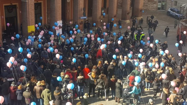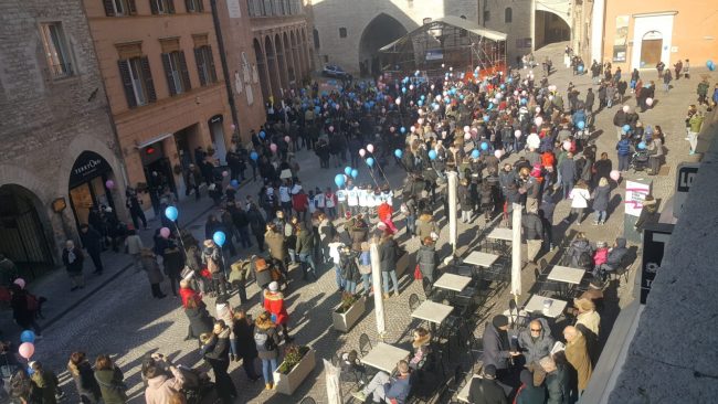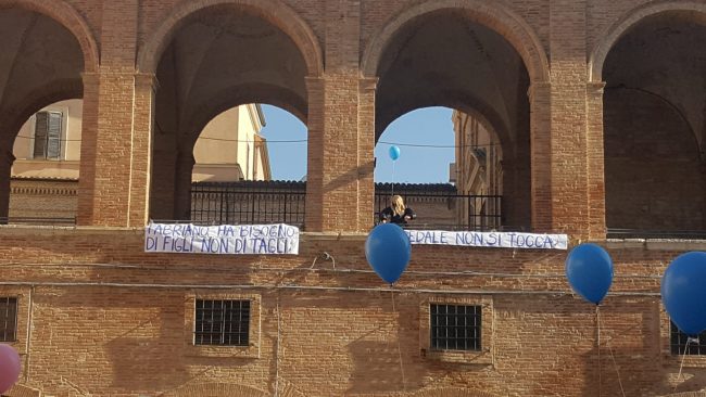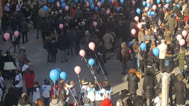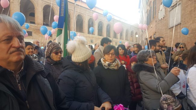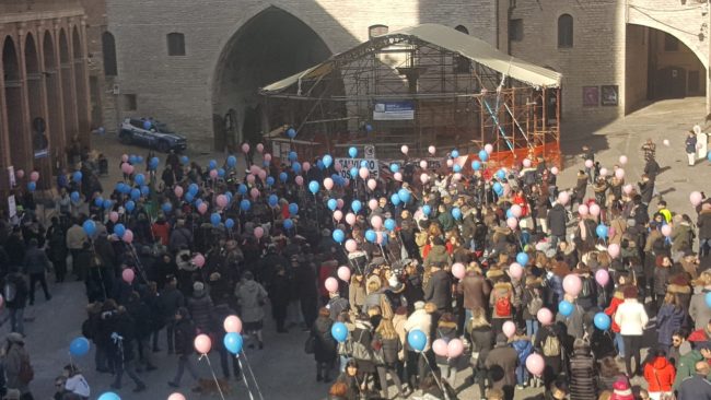 Centinaia di palloncini rosa ed azzurri per dire no alla chiusura del punto nascita dell’ospedale di Fabriano, ultimo rimasto nell’area montana, hanno colorato la piazza del Comune, al termine del corteo partito dall’ospedale “Engles Profili” per protestare e chiedere di mantenere aperto il reparto che da cinquant’anni svolge un ottimo servizio come ha ricordato l’ex responsabile del pronto soccorso, il dottor Elio Palego, tra i primi a prendere la parola in piazza.