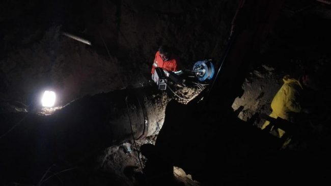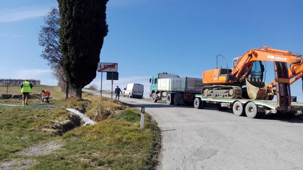 Tecnici e operai al lavoro a Cingoli per sistemare la condotta idrica