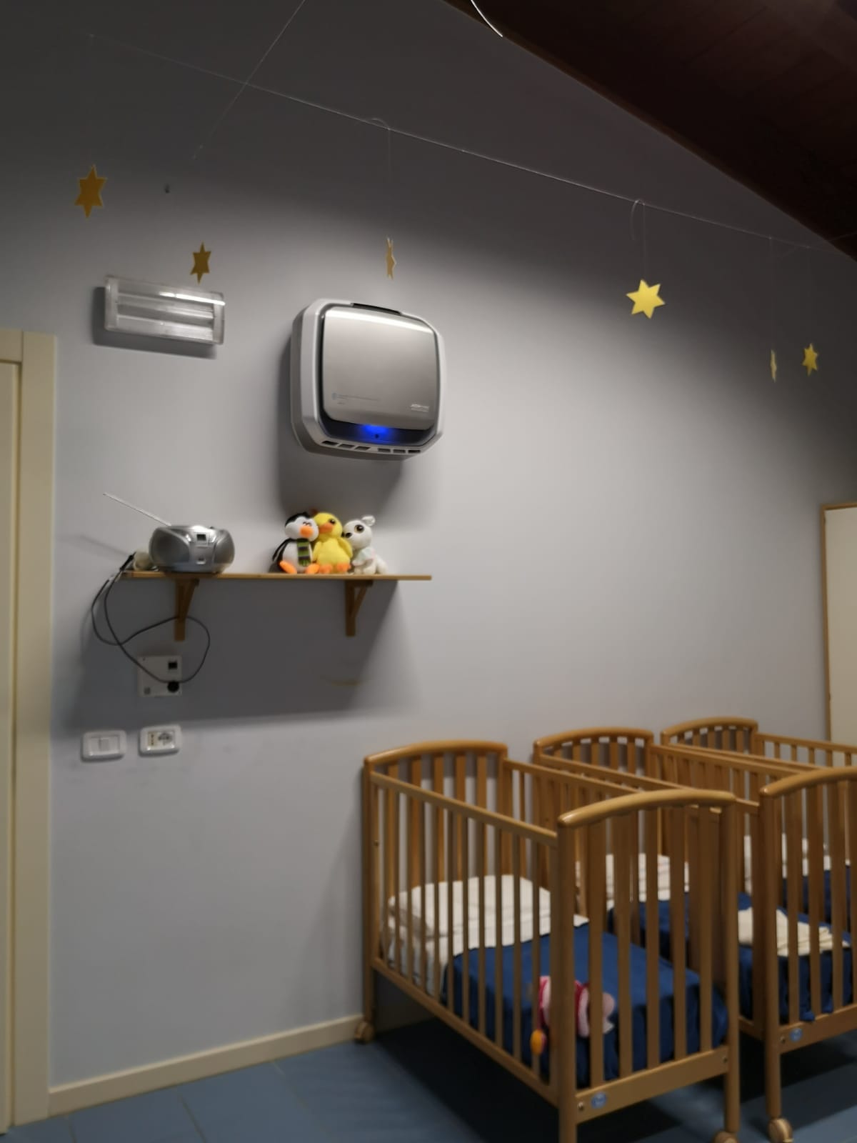 OSIMO -. La Asso ha fatto installare 4 purificatori a triplice azione filtrante. Rispetto al numero massimo di 48 ospiti la struttura attualmente è frequentata da 40 bambini
