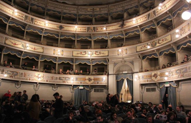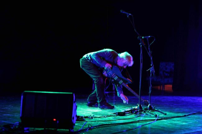 Quarant’anni di carriera passati a valicare gli orizzonti musicali conosciuti eppure Lee Ranaldo è ancora lì, con la voglia di scoprire, di superarsi, di inventare qualcosa di nuovo e mai ascoltato. Lo storico chitarrista dei Sonic Youth, forse la band che più ha influenzato la scena rock alternativa degli anni ’80 e ’90, si è esibito ieri al teatro La Nuova Fenice di Osimo di fronte ad un pubblico di appassionati arrivati da tutta la regione. L’evento è stato uno degli appuntamenti di spicco di “Klang, altri suoni altri spazi” la rassegna regionale nata per valorizzare esperienze musicali che si contraddistinguono per un significativo tasso di sperimentazione. L’incontro “Solo: songs and stories” vuole essere contemporaneamente la presentazione del dodicesimo lavoro in studio di Ranaldo, Electric Trim, ma anche un tributo alla sua carriera e alla scena musicale newyorkese di fine anni ’70 quando lo stesso militava nell’entourage del compositore di avanguardia Glenn Branca. Lo spettacolo è diviso in tre parti distinte: i primi 30 minuti sono dedicati alla visione di alcuni filmati che mostrano alcune performance sonore, poi circa 75 minuti di concerto solista, sia in acustico che elettrico, e infine il dibattito con il pubblico moderato dal giornalista Francescopaolo Chielli.