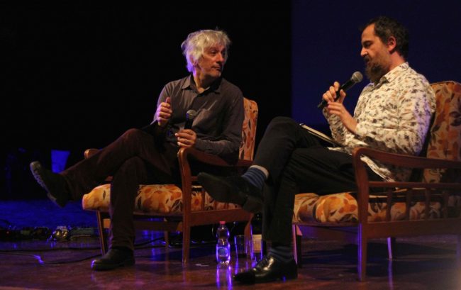 Si spengono le luci ed è il momento della musica. Entra Ranaldo e inizia una performance utilizzando un particolare strumento di distorsione made in Olanda. Uno strumento unico costruito per lui da Yuri Landman lo stesso creatore della chitarra Moonlander, utilizzata da Ranaldo. Come un bambino alle prese con il suo nuovo giocattolo Ranaldo si mette subito all’opera ricreando la psichedelia tipica del sound degli Youth, il suono emerge da iniziali vibrazioni quasi casuali, modulate e armonizzate. Ranaldo suona la sua chitarra ruotandola sul pavimento, come un rabdomante alla ricerca di acqua sembra dirigersi verso le vibrazioni elettriche adeguate alla sua mente creativa. Il primo pezzo, Let’s start again fa pendant con il secondo Circle, da un lato la monotonia di una vita ripetitiva e ciclica, dall’altro il desiderio di ricominciare nuove sfide. Rappresentano in sintesi tutta la carriera di Ranaldo, senza sosta, tra un concerto e l’altro, nella sperimentazione più pura e genuina. Il Ranaldo solista, senza supporto delle percussioni, rivela solo in alcuni momenti le tipiche sonorità dei Sonic Youth, qui i suoni e le melodie sono ben evidenti ritornando in un certo senso a uno schema più vicino alla forma canzone. Anche con in braccio la chitarra acustica però Ranaldo riesce a mostrare tutto il suo spirito lanciando nell’aria scorci musicali taglienti e compatti. Nell’ultimo pezzo di circa 12 minuti ritorna nel suo mondo, non distrugge la chitarra ma ne violenta comunque il suono creando interferenze con il cellulare, con una sorta di pedale manuale e inserendo bacchette da batteria tra le corde dello strumento. E’ il momento delle domande finali e l’artista si presta in maniera davvero amabile ad interagire con il pubblico. Parla della scena di New York quando gruppi come Ramones, Television e Talking Heads segnavano per sempre alcuni parametri musicali. Ricordi e aneddoti personali hanno accompagnato il pubblico verso la fine della lunga e storica serata. All’uscita il chitarrista ha incontrato i suoi fan per firmare autografi e ascoltare le opinioni dei presenti.