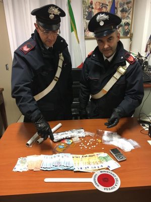 La droga, il materiale rinvenuto e la somma di denaro, verosimile ricavato dell’attività di spaccio, visto che l’uomo non svolge alcuna attività lavorativa, sono stati sequestrati.