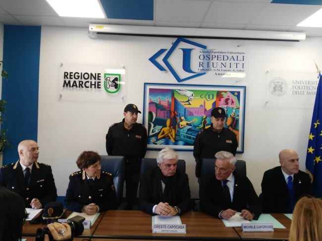 Dall’accattonaggio all’«estorsione», passando per vagabondaggio, furti ed episodi di violenza più gravi come la denuncia di stupro dello scorso agosto. La sicurezza all’interno dell’ospedale di Torrette era finita sotto i riflettori dopo un 2018 da dimenticare, ma in seguito all’intensificarsi dei controlli da parte di vigilantes interni e Polizia dello Stato – in un’azione congiunta che proseguirà anche in futuro – nella cittadella è stata ristabilita una situazione di normalità. Ad annunciarlo sono stati stamattina il Questore di Ancona Oreste Capocasa – affiancato dalla Dirigente delle Volanti, Cinzia Nicolini, e dal Coordinatore delle Volanti, Franco Pechini – e il Direttore Generale degli Ospedali Riuniti di Torrette, Michele Caporossi, insieme al Direttore Amministrativo Aziendale, Antonello Maraldo, ed al Direttore Direzione Medica Ospedaliera, Gianluca Serafini.