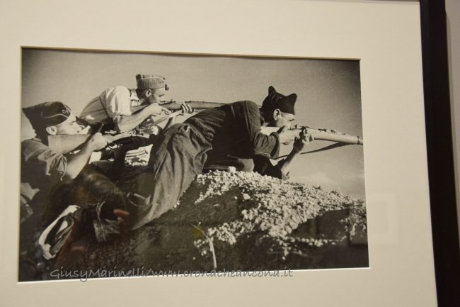 L’artista. Robert Capa (Budapest, 22 ottobre 1913 -Thai Binh, Indocina, 25 maggio 1954), è lo pseudonimo di Endre Friedmann, inventato nel 1936 insieme alla compagna Gerda Taro. In giovane età abbandona la terra natale a causa del proprio coinvolgimento nelle proteste contro il governo di estrema destra e va a vivere in Germania. L’ambizione originaria di Capa è di diventare uno scrittore, ma l’impiego presso uno studio fotografico a Berlino lo avvicina al mondo della fotografia, dove collabora con l’agenzia fotogiornalistica Dephot sotto l’influenza di Simon Guttmann. Da loro riceve il suo primo incarico a Copenhagen nel 1932 per la conferenza di Trotskji. Nel 1933 lascia la Germania alla volta della Francia a causa dell’avvento del nazismo (Capa era di origini ebraiche), ma in Francia incontra difficoltà nel trovare lavoro come fotografo freelance. Dal 1936 al 1939 si trova in Spagna, dove documenta gli orrori della guerra civile, insieme alla sua giovane compagna Gerda Taro. Un po’ per sfida, un po’ per opportunità, i due “inventano” il personaggio “Robert Capa”, un fantomatico celebre fotografo americano giunto a Parigi per lavorare in Europa. Grazie a questo curioso espediente la coppia moltiplica le proprie commesse. All’inizio, in effetti, il marchio “Capa-Taro” fu usato indistintamente da entrambi i fotografi. Successivamente i due divisero la “ragione sociale”, CAPA – e Endre Friedman adottò definitivamente lo pseudonimo Robert Capa per sé. Gerda morirà sotto i cingoli di un carro armato a soli 27 anni. Capa sarà poi in Cina per la resistenza contro l’invasione giapponese nel 1938. Dopo alcuni mesi a Londra, nel 1943 viene inviato in Nord Africa e poi segue lo sbarco degli alleati in Sicilia. In mostra è esposta una ampia selezione delle foto scattate nell’isola e poi risalendo fino a Napoli e Cassino.