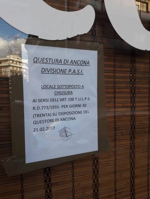 Il locale chiuso dalla questura