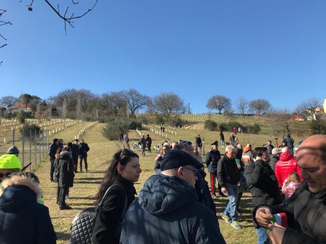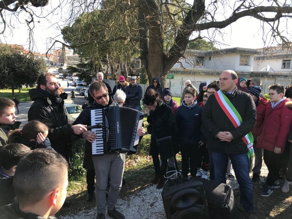 OSIMO - Taglio del nastro ieri a Osimo Stazione per il boschetto intitolato al jazzista italiano. Oltre a combattere l'inquinamento da polveri sottili e a collegare diverse aree della frazione osimana potrebbe diventare il capolinea del futuro pedibus per gli scolari
