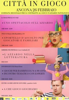 In occasione della Giornata Regionale contro il Gioco d’Azzardo Patologico (GAP), per domani (26 febbraio) il Servizio Territoriale Dipendenze Patologiche di Ancona ha organizzato, insieme all’Amministrazione Comunale e agli Enti del privato sociale (Polo 9, Cooss Marche, Oikos) un cartellone di eventi culturali e di prevenzione sanitaria per contrastare una problematica sempre più diffusa. Nel 2017, le persone che hanno chiesto un intervento terapeutico per combattere la ludopatia sono state 148 e, negli anni, l’andamento ha fatto segnare un trend in aumento, tanto che per il 2018 si stimano circa 10/15 pazienti in più.