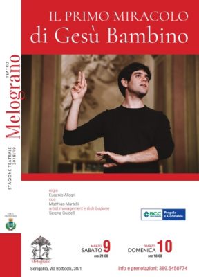 Nuovo appuntamento al Teatro Nuovo Melograno che sabato 9 marzo, alle ore 21, e domenica 10 marzo, alle ore 18, ospiterà la rappresentazione de “Il Primo Miracolo di Gesù Bambino”. Si tratta di una delle giullarate più famose di Mistero Buffo, lo spettacolo capolavoro di Dario Fo riportato in scena in questa stagione teatrale per la regia di Eugenio Allegri, l’interpretazione di Matthias Martelli e la coproduzione del prestigioso Teatro Stabile di Torino e del Teatro della Caduta.
