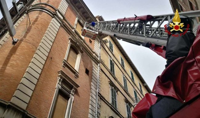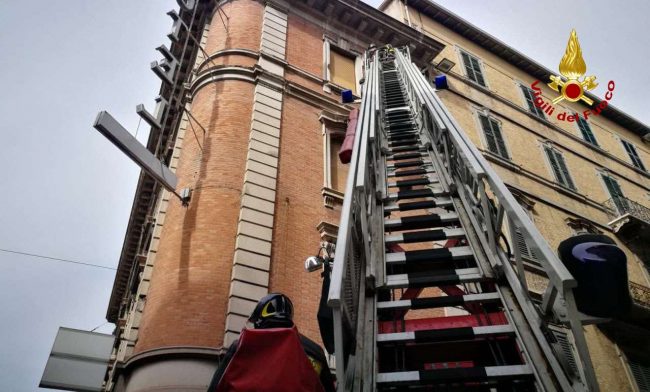 Alle 10 di questa mattina i vigili del fuoco sono intervenuti in corso Stamira, angolo via Leopardi, per parti di intonaco cadute in strada. Utilizzando l’autoscala, hanno verificato le facciate interessate, rimuovendo le parti di immediato pericolo. Nessuna persona coinvolta.