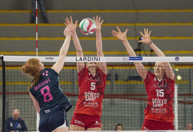 UNET E-WORK BUSTO ARSIZIO: Orro 8, Grobelna 9, Berti 11, Bonifacio 9, Gennari 11, Herbots 20, Leonardi (L); Piani 4, Cumino, Meijners. N.e.: Peruzzo, Samadan, Botezat. All. Mencarelli – Musso.