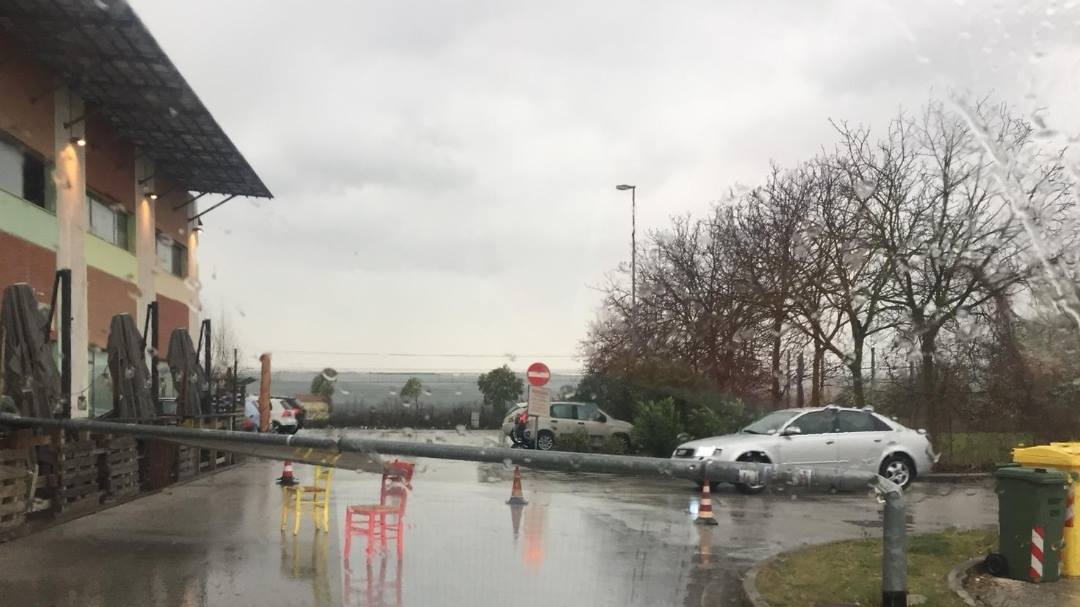Insegne e lampioni abbattuti a Jesi tra Via XX Luglio e la zona dei centri commerciali La Fornace e Arcobaleno