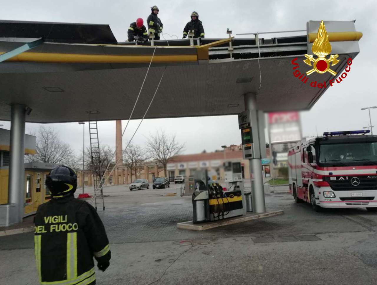 Una tromba d’aria su Jesi e le forti raffiche di vento sull’Osimano, oggi pomeriggio, hanno creato disagi alla circolazione stradale per la caduta di rami, tettoie, alberi e insegne. La Protezione civile regionale ha diramato poche ore fa un avviso di condizioni meteo avverse per vento su tutte le Marche a partire dalle 15 di oggi, 11 marzo, e fino alle 6 di domani. In particolare a Jesi verso le 15.45 la forza del vento ha staccato alcune parti della tettoia del distributore Eni nei pressi del centro commerciale della Fornace. Alle 16.45 circa i vigili del fuoco sono intervenuti sempre a Jesi dove anche l’insegna di un centro commerciale è stata divelta per le forti raffiche di vento.