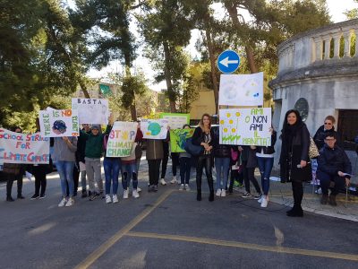 «Greta ci ha dimostrato che non si è mai troppo piccoli per fare la differenza – dice Barchiesi –. Tutti noi nella nostra quotidianità possiamo fare qualcosa per tutelare il nostro pianeta e concordo con gli studenti che c’è bisogno di un’azione tanto forte quanto urgente. Per questo ho voluto personalmente ribadire ai ragazzi il mio massimo impegno per portare avanti come amministratrice tutte quelle azioni per combattere il cambiamento climatico e per ridurre le emissioni inquinanti, ricordando come già molte di quelle che ci hanno suggerito siano già state messe in campo dall’amministrazione». «La sensibilizzazione all’educazione ambientale è di fondamentale importanza – sottolinea la vicesindaco Yasmin Al Diry – e compito anche di noi amministratori. Ho partecipato con piacere alla manifestazione e sono rimasta colpita dall’impegno dei ragazzi e degli insegnanti verso tale tematica, in particolare ho apprezzato la loro disponibilità a collaborare con l’amministrazione per migliorare la Città in cui vivono, la loro alleanza è preziosissima e, per questo, ringrazio loro e la dirigenza scolastica». Anche altre scuole hanno aderito allo sciopero globale per il futuro, con manifesti e striscioni che gli studenti hanno affisso nei giardini scolastici.