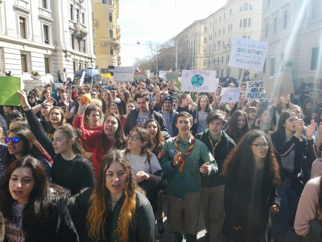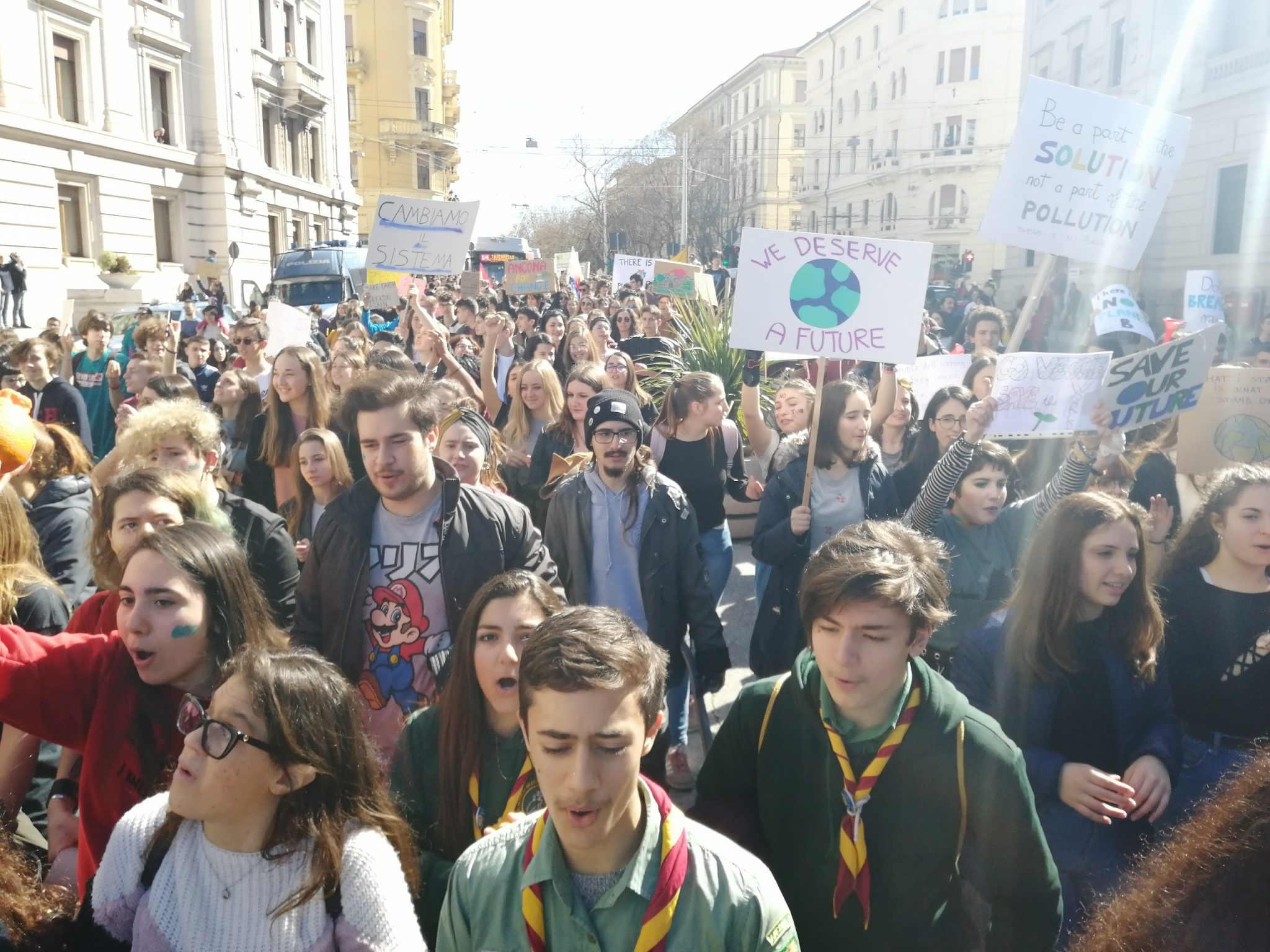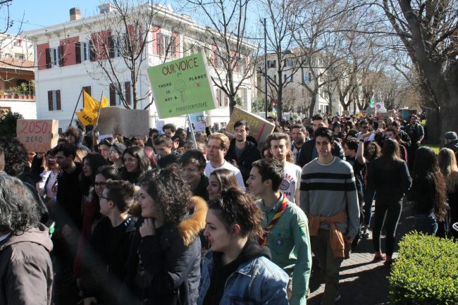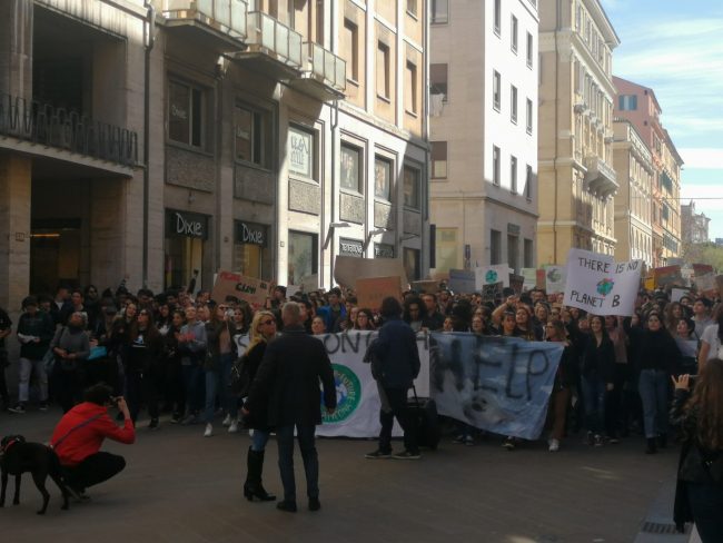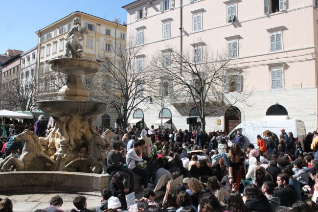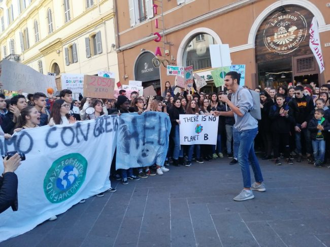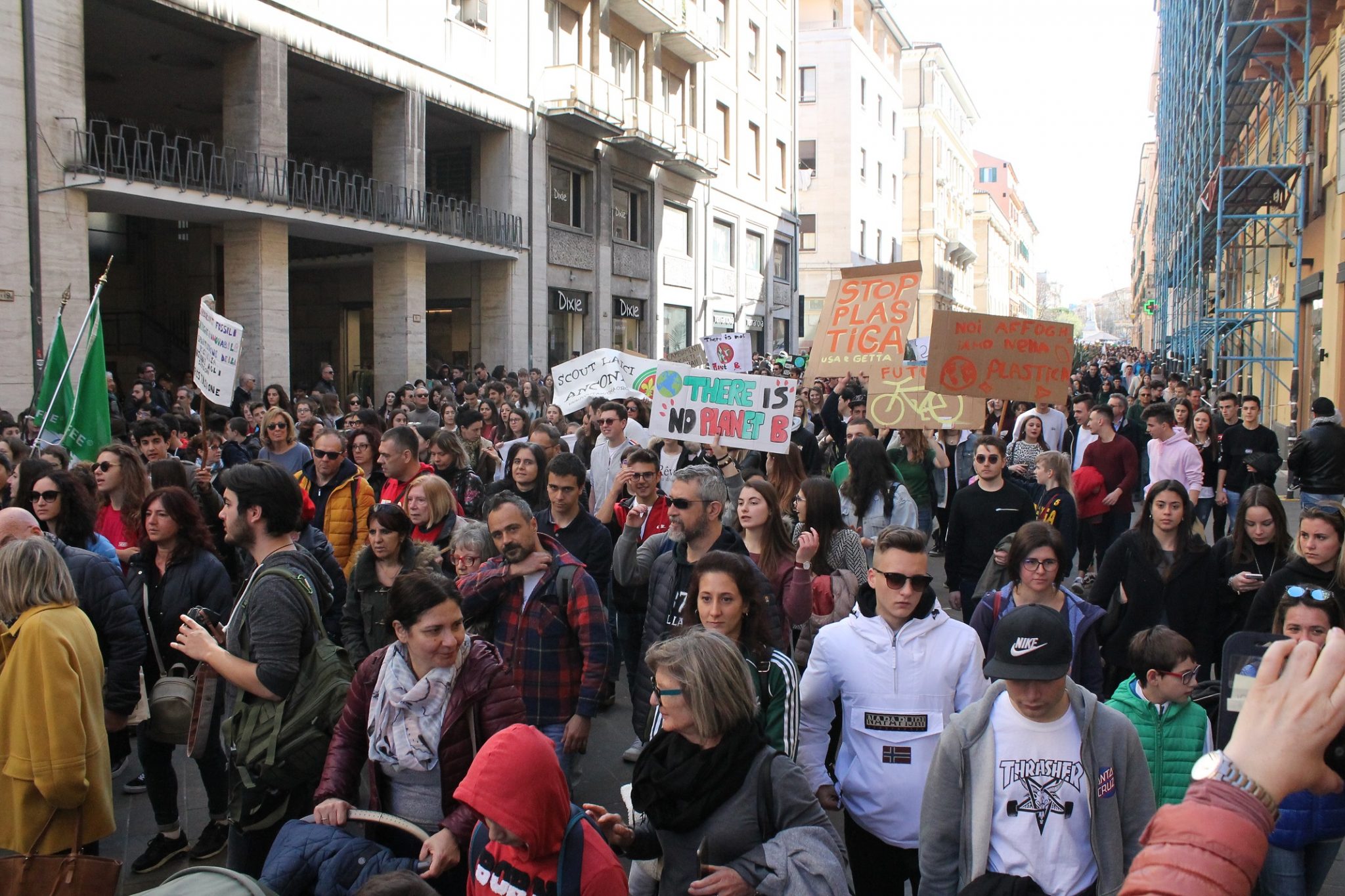 Non si ricordava una manifestazione così partecipata da anni per le vie della città. Il Global Climate Strike – Ancona ha richiamato tanti di quei giovani da lasciare sorpresi anche i più ottimisti. Oltre 4mila persone secondo gli organizzatori, comunque più di 3mila per la polizia. Ragazzi delle scuole superiori e delle università, persino delle primarie, hanno impugnato cartelli e scandito cori dal Passetto a Piazza Roma, in un corteo convocato a difesa del bene comune per eccellenza, la Terra, il suo clima, il suo ecosistema complesso e fragile, la casa di ognuno di noi e soprattutto di chi è più giovane. Quello di Ancona, come noto, non è stato un evento isolato. Cortei analoghi oggi si sono svolti su scala globale, in 123 paesi, 140 città italiane, con 2052 dimostrazioni nel mondo preparate da giorni, in un tam-tam dilagato dai social media anche alla informazione mainstream, nel segno di un’icona giovanissima, la sedicenne Greta Thunberg che dalla scorsa estate, ogni venerdì, ha iniziato a piazzarsi con un cartello davanti al Parlamento svedese contro il surriscaldamento globale. Raggruppati in hashtag come #FridayForClima #GlobalStrike e #15Marzo, solo nelle Marche si sono dati appuntamento altri giovani a Urbino, Pesaro, Fano, Senigallia, Jesi, Fabriano, Santa Maria Nuova, Cupramontana, Macerata, Camerino, Staffolo. Quella di Ancona è stata la manifestazione più grande, seguita da Macerata, e ha raccolto studenti da tutta la provincia e oltre. Anche le stesse forze dell’ordine hanno dato l’idea di aver sottostimato i numeri. Erano in formazione esigua a scortare il fiume di giovanissimi e giovani, lungo quasi 600 metri. Con gli studenti, hanno sfilato mescolati anche visi più in là con gli anni, fra attivisti di movimenti politici, associazioni e comitati, rappresentanti delle istituzioni, con o senza bandiere in un lungo elenco. La manifestazione è rimasta sostanzialmente apolitica e colorata solo di fantasiosi cartelli e cori, soprattutto alla testa del corteo. «Siamo qui per informare, e non per protestate», si è più volte scandito al megafono, e poi «Come si diceva una volta, dobbiamo agire dal basso, non lasciarci vivere». Fra i cori: «Chi non salta indifferente è», «Ci avete rotto il clima», «Ridateci il futuro» e cartelli “Make the Earth Great Again”, “L’amore è nell’aria ma l’aria è sporca”. Sirio Papa, studente universitario ed uno dei coordinatori, spiega: «È nato tutto in internet, si è creata una rete di contatti. Non c’è un comitato centrale ma ogni città è rimasta libera di organizzarsi come credeva». In una piazza Roma affollatissima, con tanto di mercato nonostante la manifestazione e la ristrettezza di spazio, hanno chiuso la giornata gli interventi di due docenti dell’Università di Urbino, Michela Maione e Giovanni Marin. Entrambi, in una lezione a cielo aperto, hanno parlato dei rischi che il nostro mondo sta vivendo, dell’importanza degli accordi climatici, e quindi del futuro della platea di giovani seduti ad ascoltare, sotto un sole troppo caldo per essere marzo ma di risveglio delle coscienze.