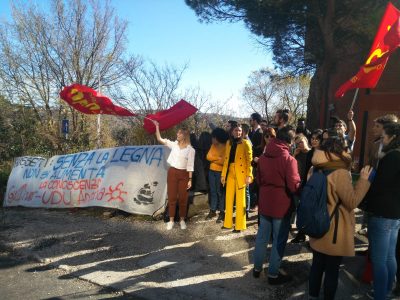 Fondi ridotti e università che cadono a pezzi: scatta la protesta del Gulliver nel giorno dell’arrivo all’Univpm del ministro dell’Istruzione Bussetti. La manifestazione è partita questa mattina alle 10 davanti al Polo Montedago con tanto di slogan e striscioni. Gli studenti universitari hanno mostrato il dissenso per la presenza e per le ultime dichiarazioni fatte dal ministro, muniti di foto, articoli di giornale che dimostrano lo stato in cui vertono le università e scuole italiane. Uno striscione riportava: «Bussetti: senza la legna non si alimenta la conoscenza», in riferimento a un’uscita del ministro dove aveva detto «ci dobbiamo riscaldare con la legna che abbiamo». Ha dichiarato il coordinatore del Gulliver – UdU Ancona Giorgia Venditti: «Considerando la crisi generale del Paese, una parte sempre maggiore della popolazione è in condizioni di disagio economico e il diritto allo studio è meno che mai una certezza. Si dovrebbe investire sulla formazione, invece quello a cui stiamo assistendo sono gli ennesimi tagli. E’ necessario garantire un accesso libero ai più alti gradi dell’istruzione a tutti, e soprattutto ai capaci e meritevoli, seppur privi di mezzi. Questo, non solo rispetterebbe quanto citato nell’articolo 34 della costituzione, ma riuscirebbe a dare la spinta al paese per tornare ad investire in ricerca e sviluppo ed uscire dalla crisi in cui ormai si trova da 10 anni. L’attuale Ministro, invece, non fa che portare avanti le politiche dei suoi predecessori, come in primis la Gelmini». E ancora: «La condizione strutturale dell’università è già al limite da diversi anni; ci crollano i soffitti sulla testa, gli studentati non sono adeguati agli standard richiesti ed il fondo per l’edilizia universitaria è pari a zero. Inoltre, la qualità dell’insegnamento è limitata, ferma da decenni e non in linea con gli standard europei, a causa degli investimenti assenti, delle condizioni precarie degli insegnanti e della mancanza di un piano serio di assunzioni del personale docente. E’ fondamentale rendere l’università gratuita e accessibile a tutti e rendere la qualità diffusa del sistema formativo una prerogativa dell’azione politica piuttosto che puntare a pochi poli di eccellenza a scapito della maggior parte dei restanti. Stiamo assistendo invece a un Ministro che dichiara che “ci dobbiamo riscaldare con la legna che abbiamo”. Vorremmo che i luoghi dell’istruzione non siano solo un ente di formazione professionale, ma un luogo di crescita a 360 gradi. Oggi c’è la marcia per il clima, ma il ministro ci ha detto di andare a scuola. Come abbiamo manifestato in altre occasioni, come il 16 novembre e il 9 febbraio in tutte le piazze italiane, anche oggi siamo qui a esprimere il nostro dissenso, nonostante la presenza del Presidente della Repubblica che ci ha onorato della sua presenza in occasione di un avvenimento così importante per la nostra università».