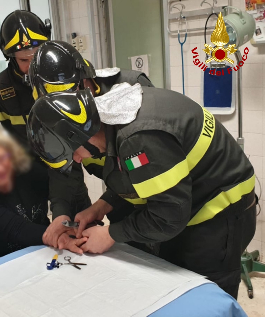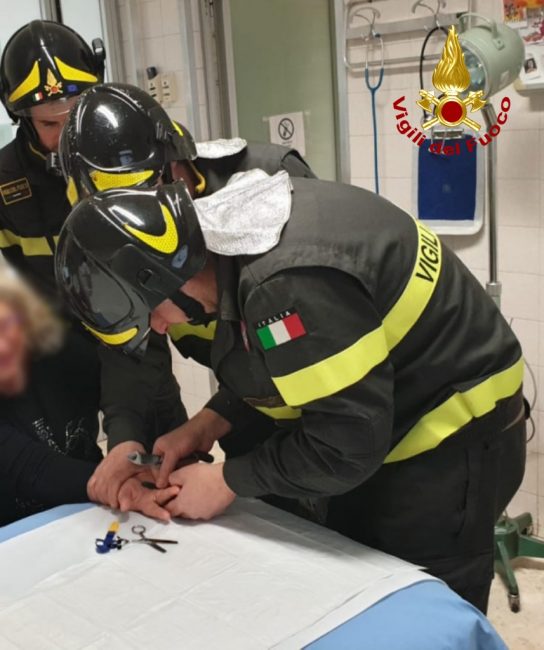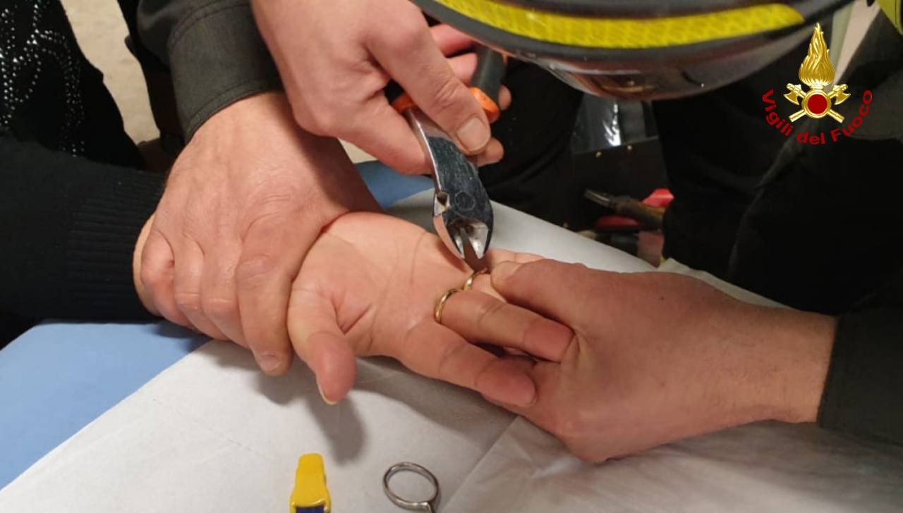 Stamattina alle 11,30 circa, i vigili del fuoco sono intervenuti a Chiaravalle, all’ospedale Montessori per soccorrere una persona. Una signora cinquantenne si era rivolta al Pat per rimuovere due anelli, in quanto il gonfiore delle dita non permetteva di sfilarli. I vigili utilizzando le cesoie hanno tagliato gli anelli per sfilarli dalla mano della signora.