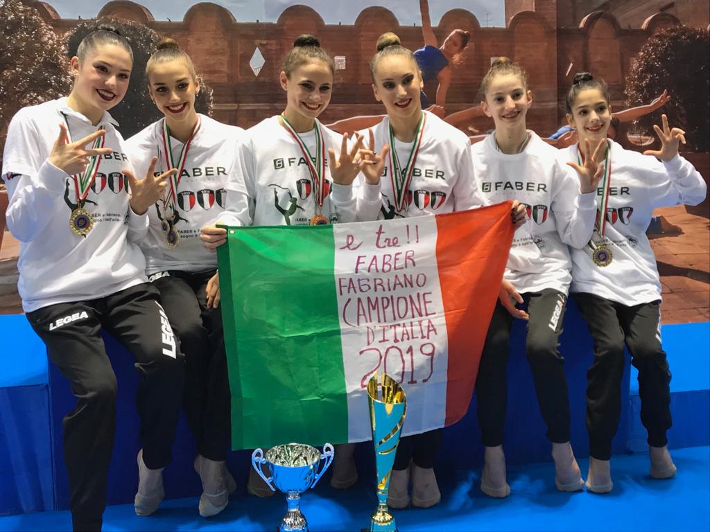 Lo scudetto 2019 è ancora una volta della Faber Ginnastica Fabriano: la squadra è Campione d’Italia per il terzo anno consecutivo. “Nonostante la modifica ai calendari federali, lo spostamento del Campionato, nonostante l’ultimo scudetto lo abbiamo tenuto soltanto per poco più di un mese, anche lo scudetto 2019 arriva a Fabriano. – ricorda un comunicato ufficiale della società – Quattro tappe, quattro vittorie, ma non solo, Faber Ginnastica Fabriano squadra imbattuta dal 2017. Fabriano inarrestabile, Fabriano piglia tutto, Fabriano sogna e ci crede fino in fondo. Le ragazze sono sempre scese in pedana determinate a fare bene, certe che avrebbero dovuto lottare fino all’ultimo secondo dell’ultimo esercizio, hanno resistito alle pressioni esterne con perseveranza e passione, nulla era scontato, le avversarie agguerrite supportate anche dalle migliori ginnaste del ranking mondiale non erano facili da tenere dietro, ma nonostante ciò per il terzo anno consecutivo si sono e ci hanno regalato un sogno. Nel 2017 quello storico scudetto ce lo siamo cuciti sul cuore e li rimane. La prova di sabato sera è stata una prova acuta, una prova di testa e cuore”.