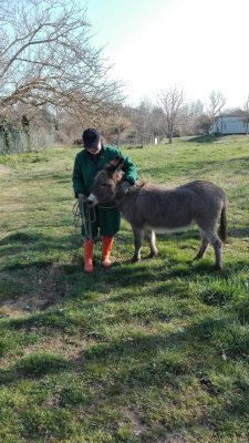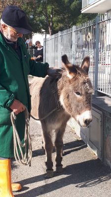 Carlo Pelonara con l’asinella Camilla lungo viale del Lavoro