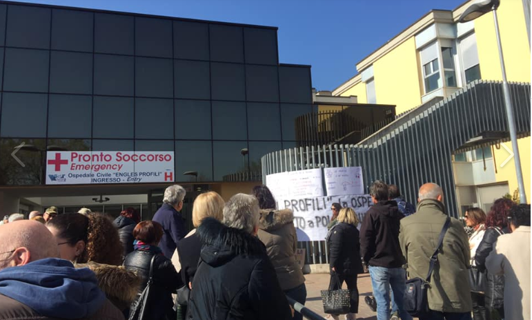 La manifestazione di protesta indetta stamattina dal Coordinamento cittadino per la salvaguardia dell’ospedale Profili