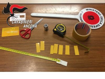 Alcol, droga e arnesi da scasso. E’ stato un weekend di controlli quello appena trascorso e che ha visto impegnati i Carabinieri della Compagnia di Senigallia con ben 49 pattuglie dislocate sulle principali strade del territorio. Il bilancio dell’attività è di 3 persone denunciate all’Autorità Giudiziaria, controllate complessivamente 358 persone e 236 veicoli, 26 gli automobilisti sottoposti all’alcol test preliminare, mentre sono 18 le contravvenzioni elevate al codice della strada. A finire nei guai è stato un 60enne residente in provincia di Novara, senza fissa dimora, controllato a piedi nei pressi della Chiesa della Maddalena nel centro storico cittadino, che è stato denunciato per il reato di possesso ingiustificato di arnesi da scasso. L’uomo, sottoposto a perquisizione è stato trovato in possesso di materiale – sottoposto immediatamente a sequestro – idoneo a sottrarre monete dalle cassette delle offerte. Si tratta in particolare di nastro biadesivo, una lamella metrica di 30 centimetri ed un paio di forbici (nella foto). Con ogni probabilità l’uomo stava preparando qualche colpo nelle chiese di Senigallia, ma i militari lo hanno intercettato prima.