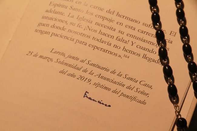 Come annunciato ieri dall’Arcivescovo Delegato Pontificio, Mons. Fabio Dal Cin, da oggi è in visione presso il Museo Pontificio l’Esortazione post-sinodale firmata lunedì scorso all’interno della Santa Casa di Loreto da Papa Francesco.