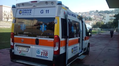 Scontro aereo tra calciatori allo stadio Dorico: 30enne finisce al pronto soccorso. Si tratta di un giocatore della Nuova Folgore, squadra che questo pomeriggio è scesa in campo per sfidare il Torre San Marco nel match di ritorno del campionato di seconda categoria girone C. Il giocatore, cadendo dopo lo scontro con un avversario, ha sbattuto malamente contro il campo riportando una sospetta lesione alla spalla. L’infortunio è avvenuto alla fine del primo tempo. Soccorso dalla Croce Gialla, il 30enne è stato trasferito al pronto soccorso di Torrette.