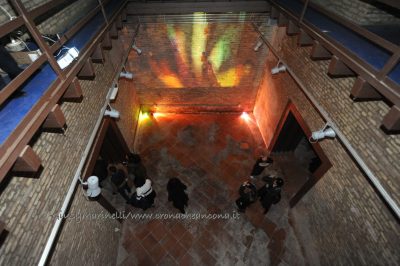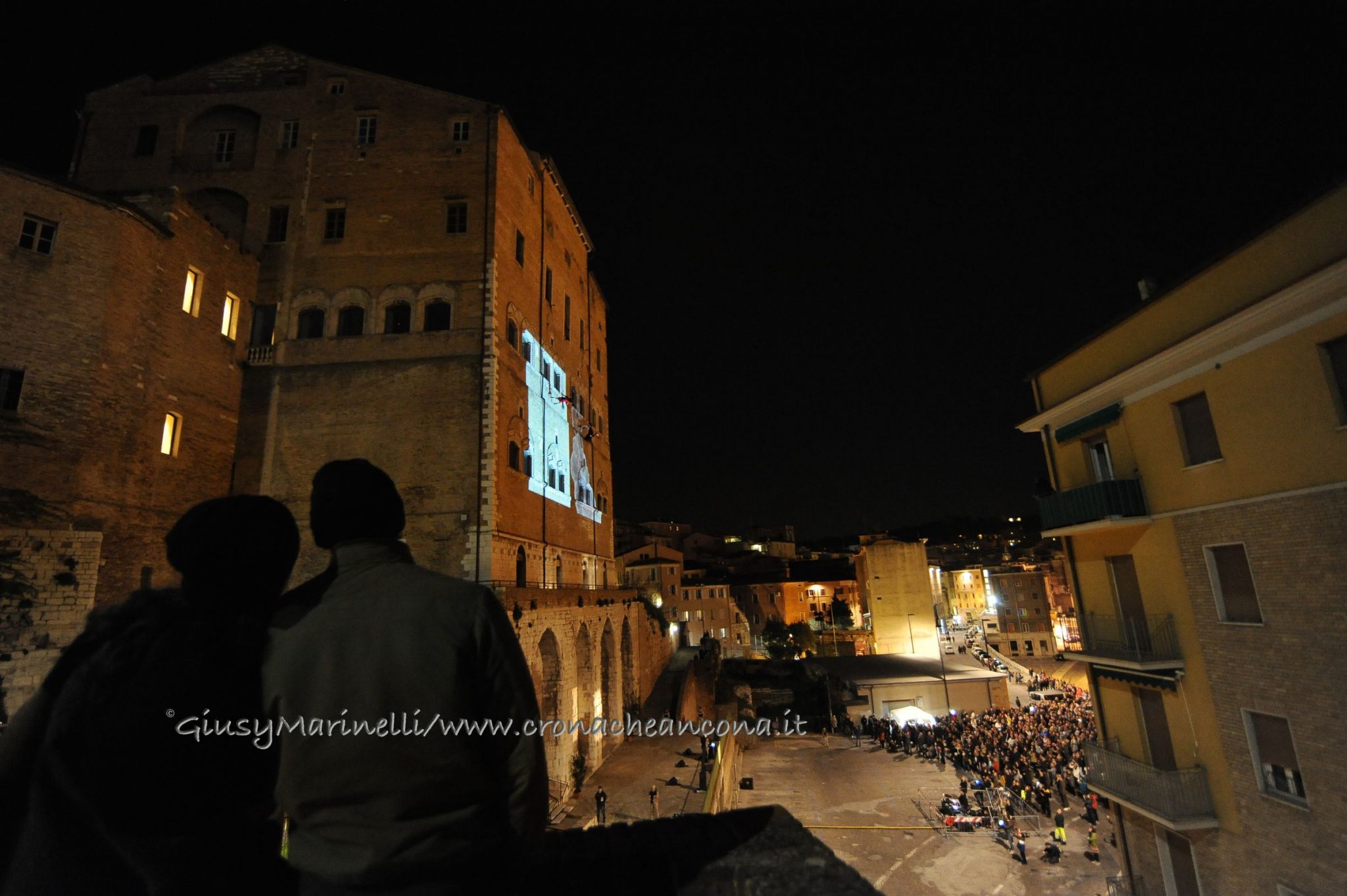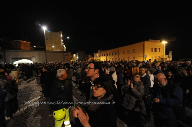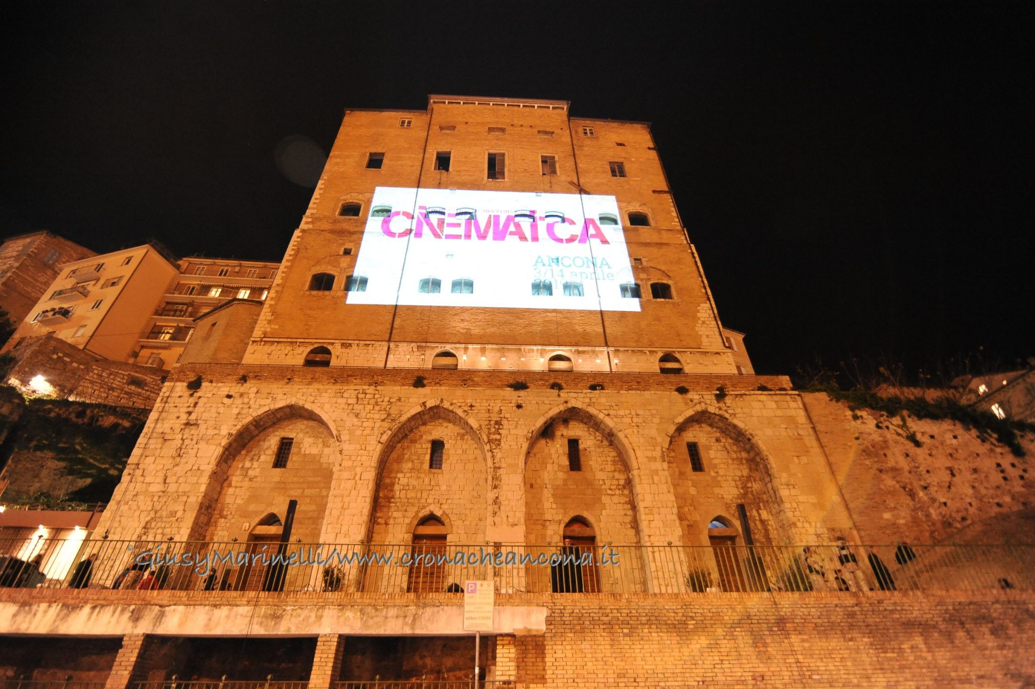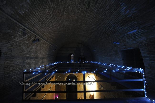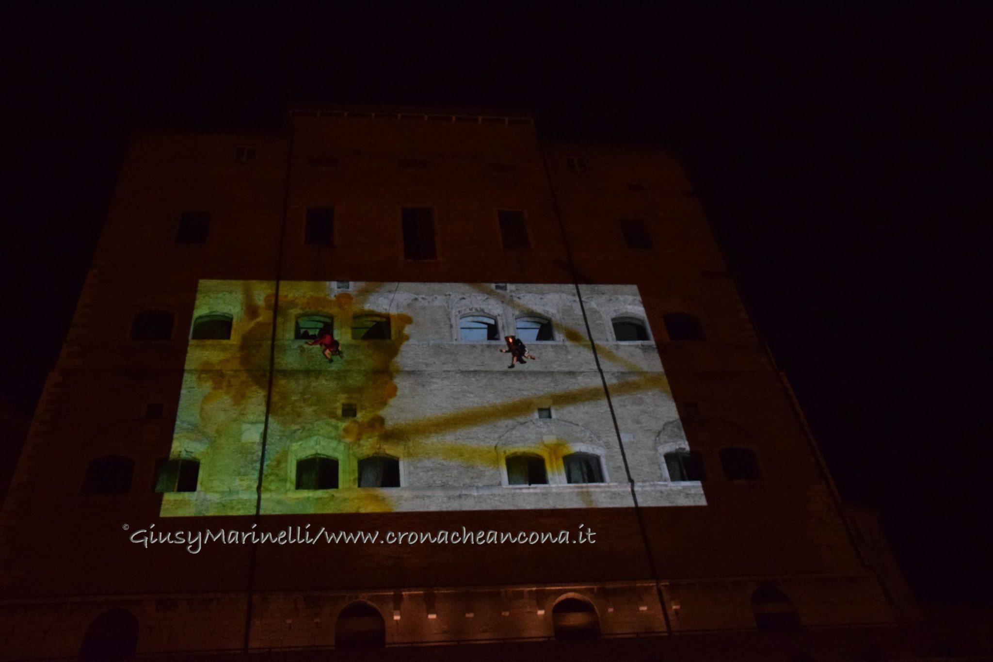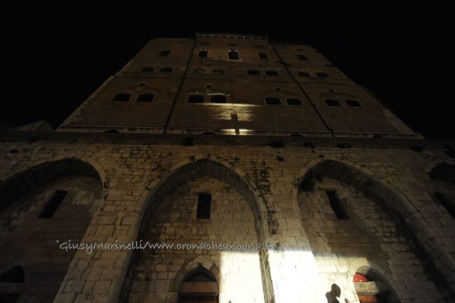 Una porta fronte mare che si spalanca sul porto e conduce al cuore della città. Inizia il nuovo corso di Palazzo degli Anziani – biglietto da visita di Ancona per i croceristi e non solo – dove oggi (7 aprile) sono state inaugurate le sale restaurate del basamento (ex magazzini), con tanto di suggestivo spettacolo di danza verticale lungo la parete del grattacielo medievale della città. Una performance con musica dal vivo e colorate proiezioni, curata della Compagnia Il Posto con direzione artistica del festival Cinematica (di cui l’evento è stato uno dei momenti clou), che ha ricevuto gli applausi della piccola folla riunitasi per vedere il primo passo del new deal per quest’area della città. Baciata dai raggi rosa del sole al tramonto riflessi sulle acque del golfo, la riapertura di quelle stanze, chiuse da tempo, è stata un’anteprima di ciò che sarà l’Urban Center, sede dello sportello turistico IAT Ancona 3.0 con percorsi multimediali hi-tech e vetrina delle bellezze e dei prodotti made in Marche, e base operativa del progetto Heritage Science, AnconArcheologica. «Il recupero di Palazzo degli Anziani – sottolinea la sindaca Valeria Mancinelli, affacciata alla terrazza che dà su piazza Dante – segna di fatto l’inizio della parte realizzativa del progetto ITI Waterfront e ne costituisce il baricentro, quale cerniera tra la città storica e il mare». A questo, si aggiungerà a breve il secondo tassello del progetto, quello dell’illuminazione dal porto su fino a via Pizzecolli, per il quale è stato già aggiudicato il concorso. Previsto anche il recupero dell’area degli ex uffici del Nautico, dove verrà realizzata una piazza, punto di sosta in direzione porto, e arriveranno anche i bus elettrici per unire il golfo alla città. «Entro il 2020, il progetto waterfront sarà concluso e darà un nuovo volto a questa parte fondamentale della città», parola della prima cittadina.