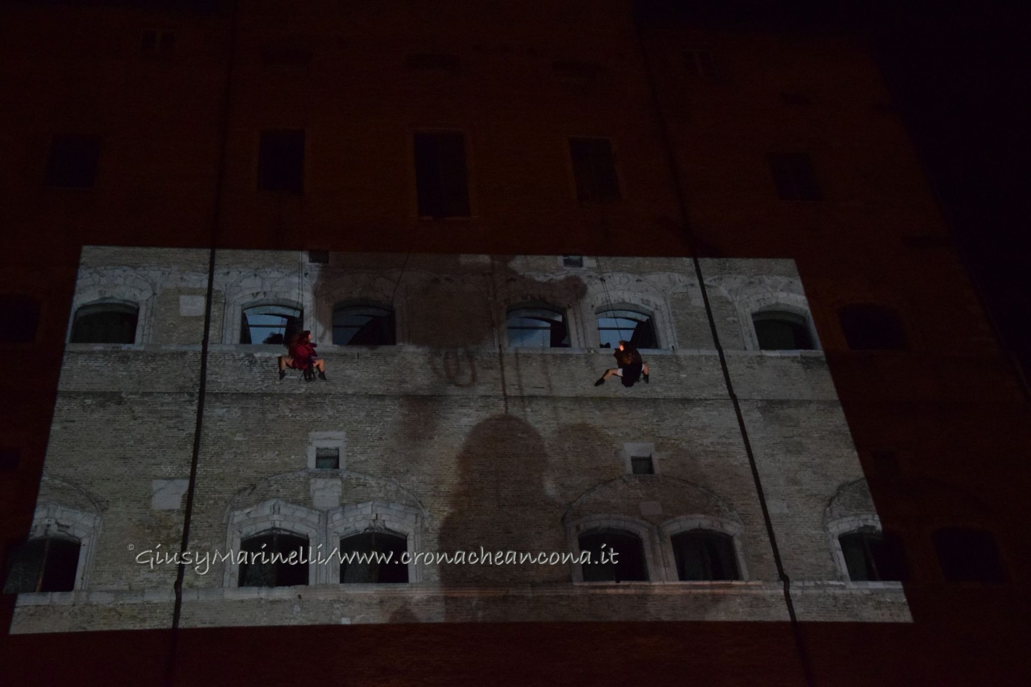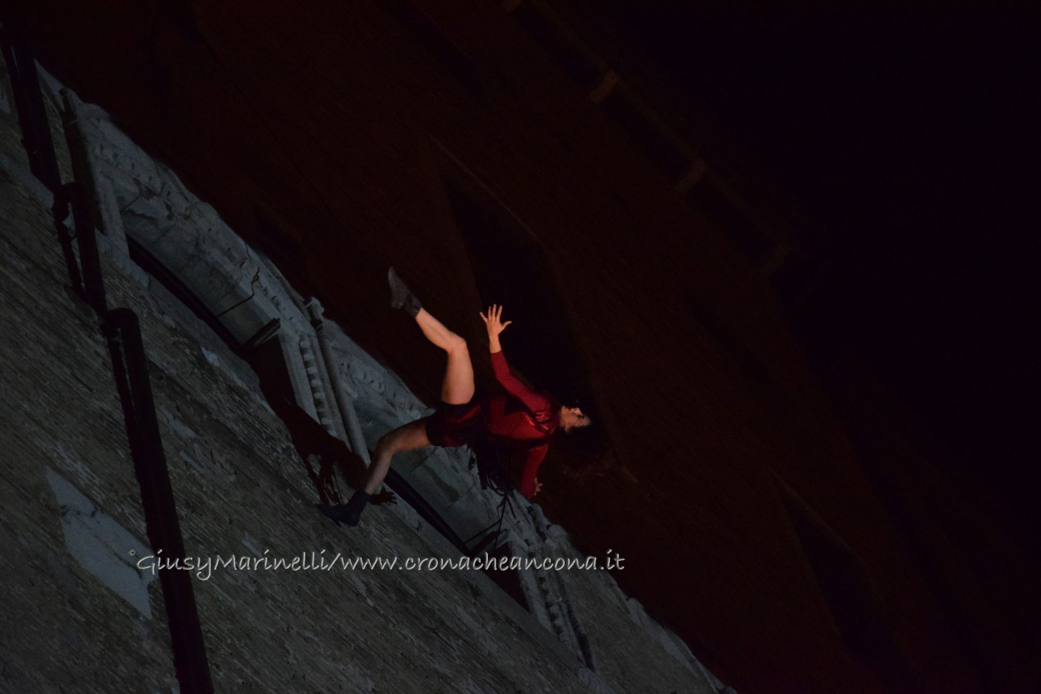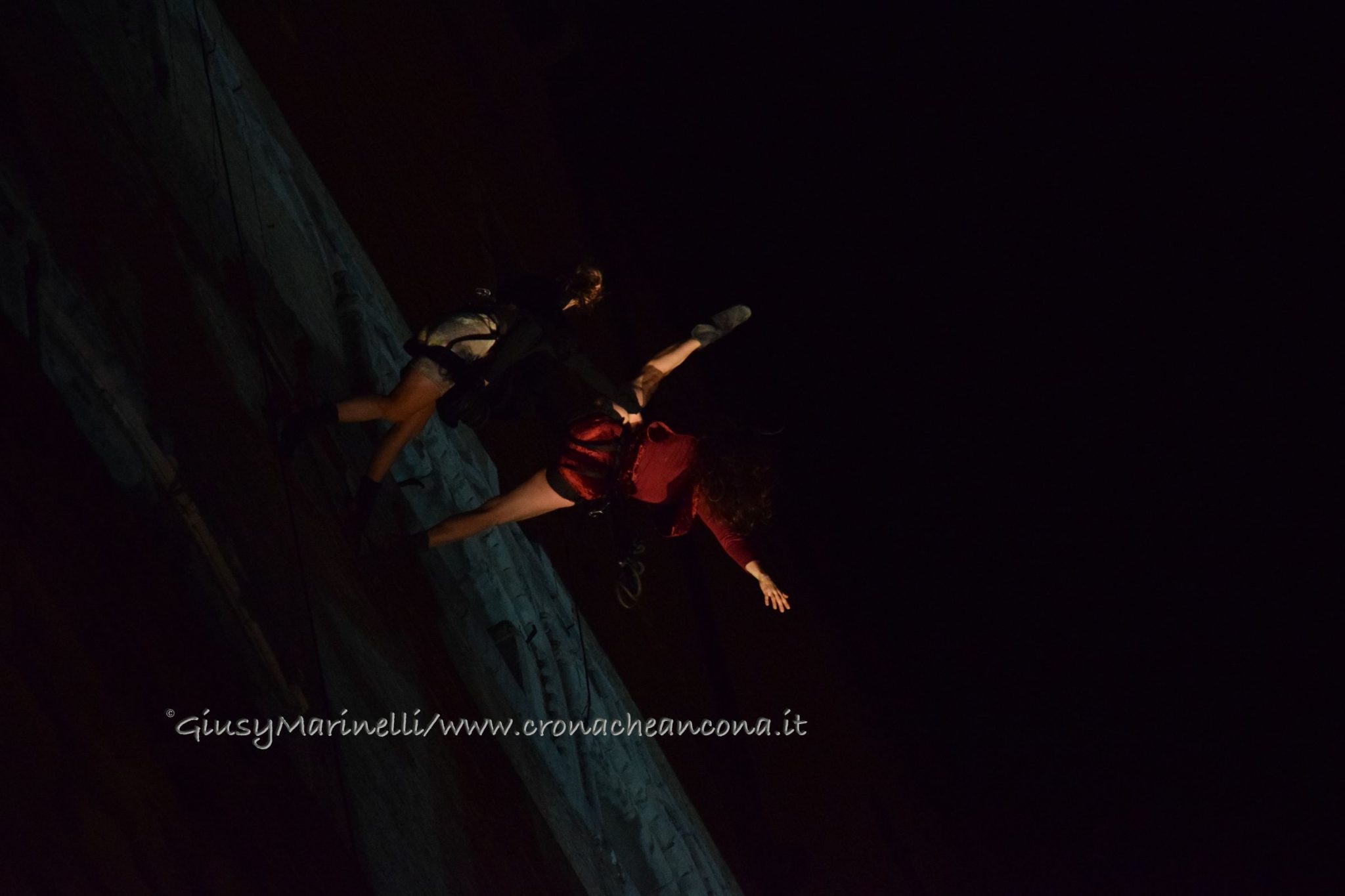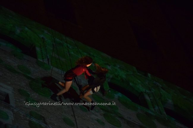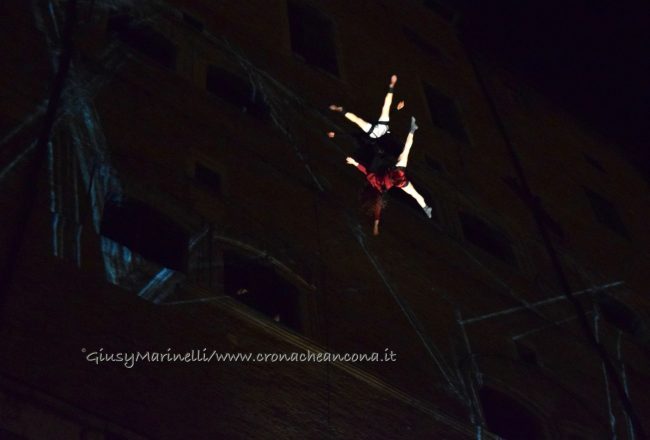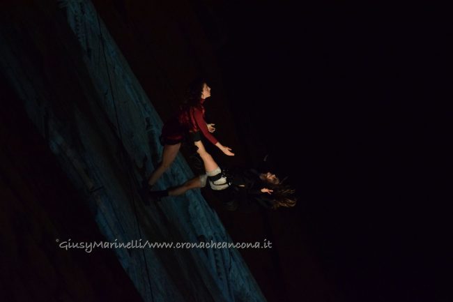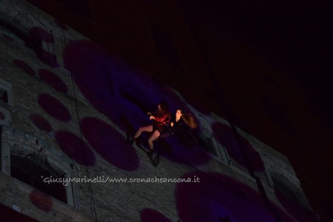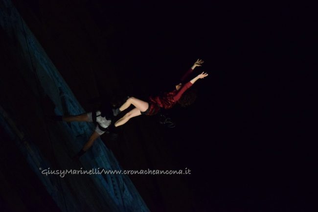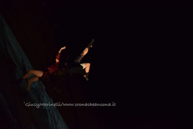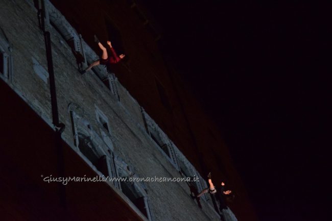 Un momento dello spettacolo di danza verticale