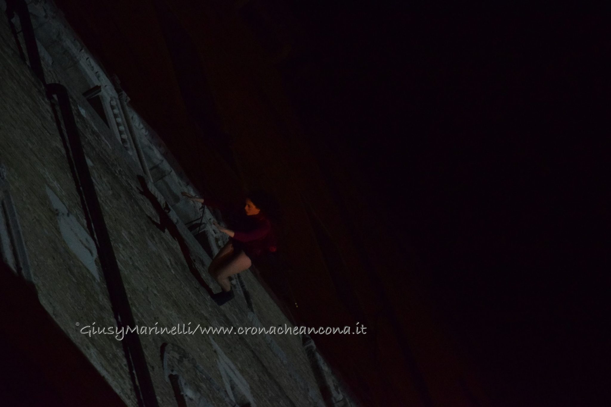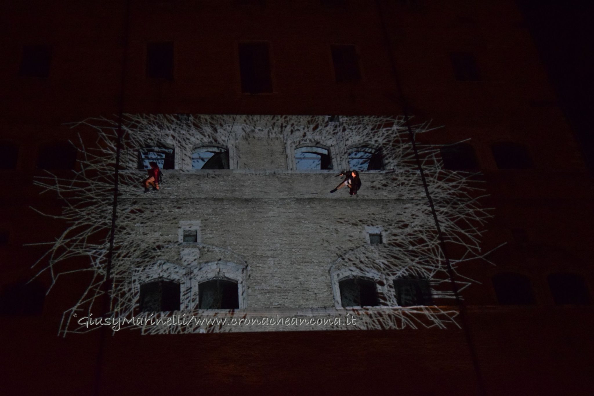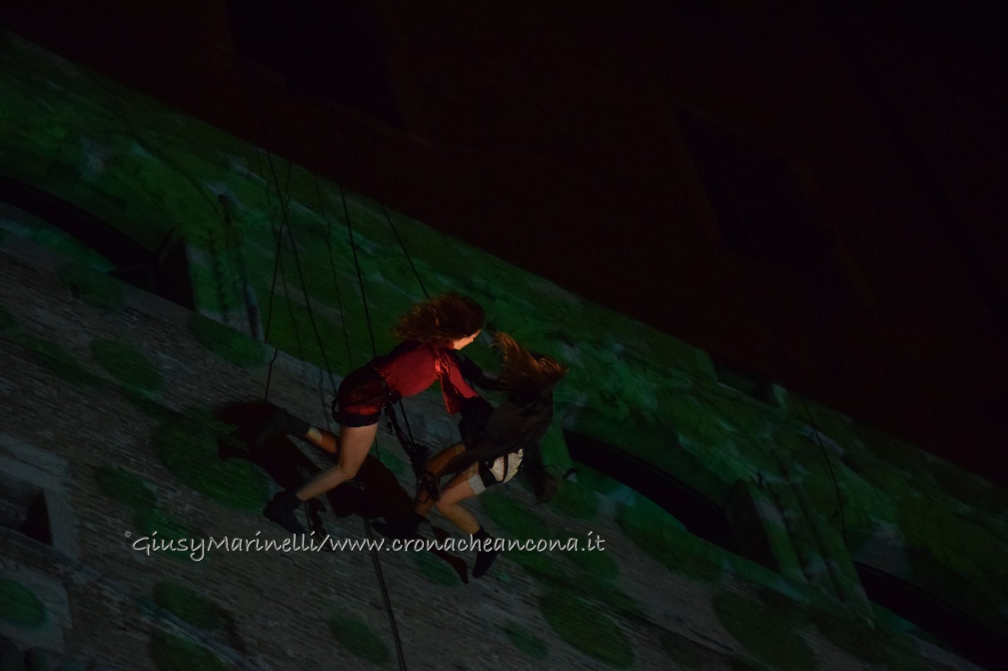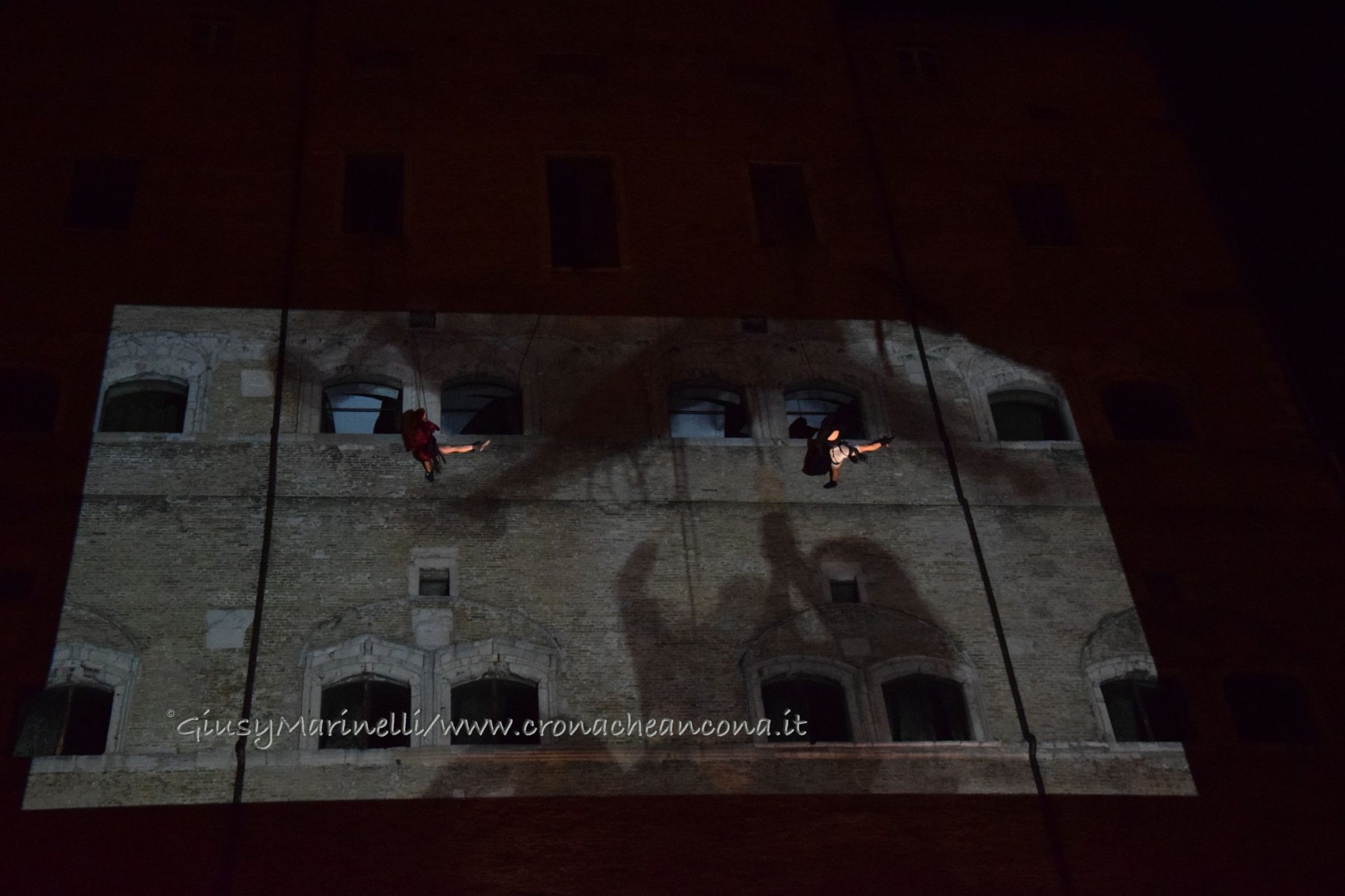 Un momento dello spettacolo di danza verticale