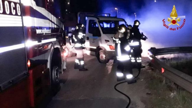 Assaltano il distributore di benzina e poi si danno alla fuga appiccando dei roghi sulla strada. Notte di fiamme e paura quella vissuta in via Marconi, a Falconara. I ladri hanno preso di mira la stazione Ip che si trova di fronte alla Famar Srl. Erano le 3.30 quando sono entrati in azione. Hanno cercato di portare via due colonnine bancomat con un escavatore. In un caso, non ci sono riusciti. Nell’altro, sì, ma senza portare via nulla, tanto che la cassaforte è stata abbandonata nei pressi di uno sfasciacarrozze non tanto distante dalla stazione di servizio. Per coprire la fuga hanno aperto una scia di fuoco che ha investito un cassonetto e alcuni pallet di legno. Un autocarro è stato abbandonato lungo la strada, rubato un’ora prima del rogo assieme all’escavatore dal deposito della Multiservizi. Da un altro esercizio commerciale, i ladri hanno preso quattro lattine di acquaragia da 5 litri ciascuna, utilizzate per alimentare i roghi appiccati. Almeno tre quelli domati dai vigili del fuoco. I carabinieri sono intervenuti con tre pattuglie e determinante è stato il loro arrivo per mandare in fumo il piano dei ladri. Dall’analisi delle telecamere della stazione, sembra che abbiano agito almeno sei persone. Le indagini sono affidate alla Tenenza di Falconara.