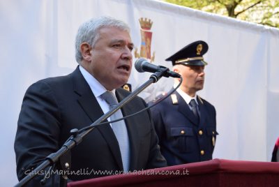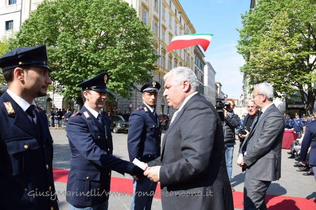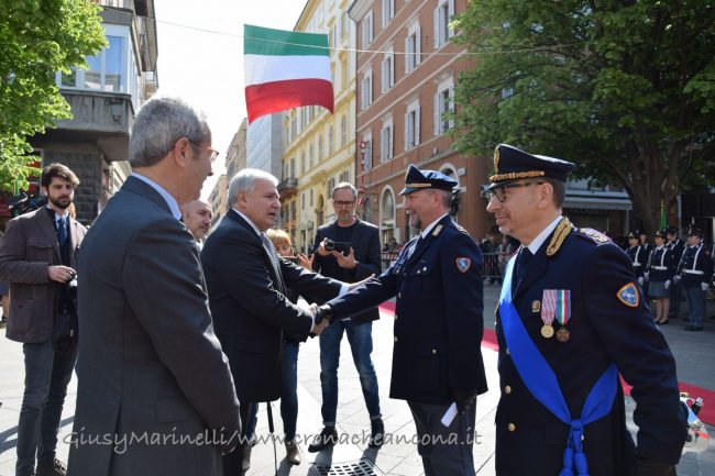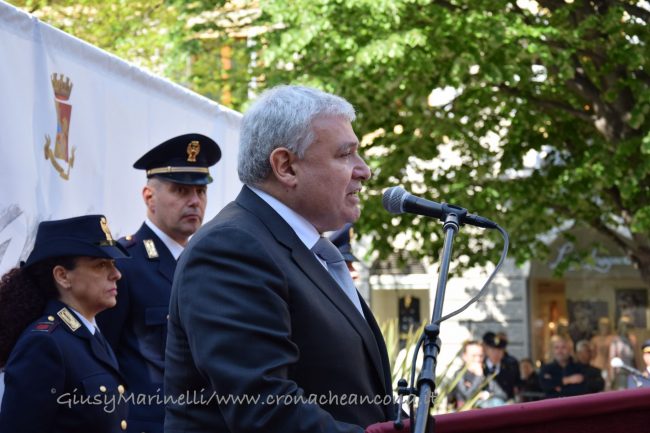 «Esserci sempre». In mezzo alla gente. Tra i pericoli. In ogni situazione. Il motto della Polizia di Stato è risuonato questa mattina durante le celebrazioni per il 167esimo anniversario della fondazione del corpo. La festa si è celebrata, come gli anni scorsi, in piazza Roma e ha richiamato le maggiori cariche istituzionali della città. Premiati tutti gli agenti che negli anni scorsi si sono distinti nelle attività condotte. Le parole del questore Claudio Cracovia, che ha preso in esame la situazione dei delitti commessi lo scorso anno nell’intera provincia, tracciando un quadro positivo eccetto che per i reati di spaccio, i furti in abitazione e le frodi informatiche: «Rimane ancora un grande cruccio: il sentimento di insicurezza vissuto da gran parte della popolazione rimane diffuso e questo nonostante gli sforzi ed i risultati conseguiti. Da questo discende un rinnovato impegno a ripensare metodi e strategia sinora seguiti, a rimodulare gli obiettivi dei progetti ed i format di intervento, non senza aver dato ascolto alle istanze che vengono dal territorio per voce degli abitanti, un territorio il cui tessuto sociale ha grande sete di legalità e tuttora grande fiducia nelle istituzioni, un patrimonio di senso civico da liberare verso adeguate e più moderne forme di sicurezza partecipata». E ancora: «Le persone devono tornare a riconoscersi come soggetti attivi degli ambienti urbani, temi di scottante attualità come la sicurezza e la vivibilità delle realtà urbane vanno affrontati con una visione, lucida libera da paludamenti ideologici o da fini di parte. Recuperare l’identità dei luoghi, esaltarne le specificità, aiutare la nostra gente a sentirsi a casa propria e ad esercitare quel controllo sociale che solo persone spinte a ritrovarsi in contesti pervasi da bellezza e armonia possono esercitare».