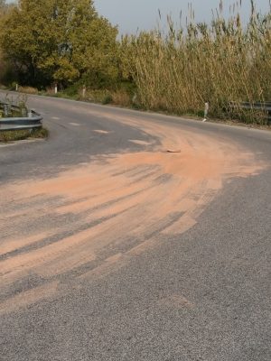 Il camion dell’impresa edile perde alcuni barattoli di vernice lungo via dell’Aeroporto e imbratta la strada di rosa salmone, ma l’autista si allontana prima dell’arrivo della polizia locale, che rintraccia i responsabili dopo alcuni giorni di indagini: la vernice rovesciata sull’asfalto è la stessa utilizzata per la ristrutturazione di un edificio e il codice identificativo dei barattoli coincide. L’azienda responsabile dell’imbrattamento, oltre alla multa scattata in base all’articolo 15 del codice della strada, dovrà pagare la ripulitura dell’asfalto. La perdita del carico era avvenuta la settimana scorsa in via dell’Aeroporto, in corrispondenza della curva prima del viadotto che collega a via Consorzio. Gli agenti della polizia locale di Falconara erano arrivati a incidente già avvenuto e avevano notato la presenza di un quantitativo consistente di vernice color salmone, che aveva imbrattato buona parte della carreggiata. Il conducente del furgone, invece di fermarsi, si era allontanato. A inchiodarlo sono stati però i bidoni di vernice, che gli operatori hanno ritrovato ai margini della strada. E’ stata disposta la pulizia dell’asfalto e contemporaneamente gli agenti si sono messi alla ricerca di elementi utili all’identificazione del responsabile. Le indagini hanno portato gli uomini del comando falconarese a un cantiere per la ristrutturazione di un immobile nella periferia cittadina: gli operai stavano usando una vernice dello stesso colore di quella ritrovata in via dell’Aeroporto. Gli agenti hanno poi individuato sia il mezzo da cui il carico era caduto, sia la ditta proprietaria e il conducente, che sono stati sanzionati ai sensi dell’articolo 15 del Codice della Strada e che dovranno farsi carico del costo della pulizia della sede stradale.