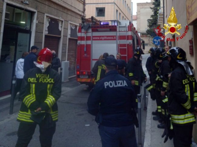 A fuoco appartamento in via Magenta: tre feriti. Questo il bilancio del rogo che si è scatenato questa mattina, attorno alle 5, in una palazzina proprio dietro il Mercato delle Erbe. Stando ai primi riscontri, la miccia sarebbe partita da una stanza di pittura, posta al primo piano di un appartamento. Sono rimasti feriti gli occupanti della casa che ha preso fuoco, un artista di 98 anni e la badante di 50. Lui si è ustionato sul collo e sulle braccia. Lei ha respirato fumo, riportando una lieve intossicazione. E’ rimasta intossicata anche un’anziana che abita con il nipote ai piani superiori del palazzo, di 92 anni. Dai primi riscontri, sembra che il rogo si sia scatenato nella stanza da lavoro del 98enne, dove sono presenti vernici e prodotti infiammabili. Sul posto sono piombate le autobotti dei vigili del fuoco, le ambulanze della Croce Gialla e Rossa e le pattuglie delle Volanti della polizia. I vigili del fuoco hanno circoscritto le fiamme e messo in sicurezza il sito. L’appartamento interessato dall’incendio e una stanza del piano superiore non sono fruibili. L’anziano è stato prima trasportato al pronto soccorso di Torrette e poi al centro ‘Grandi Ustionati’ di Cesena.