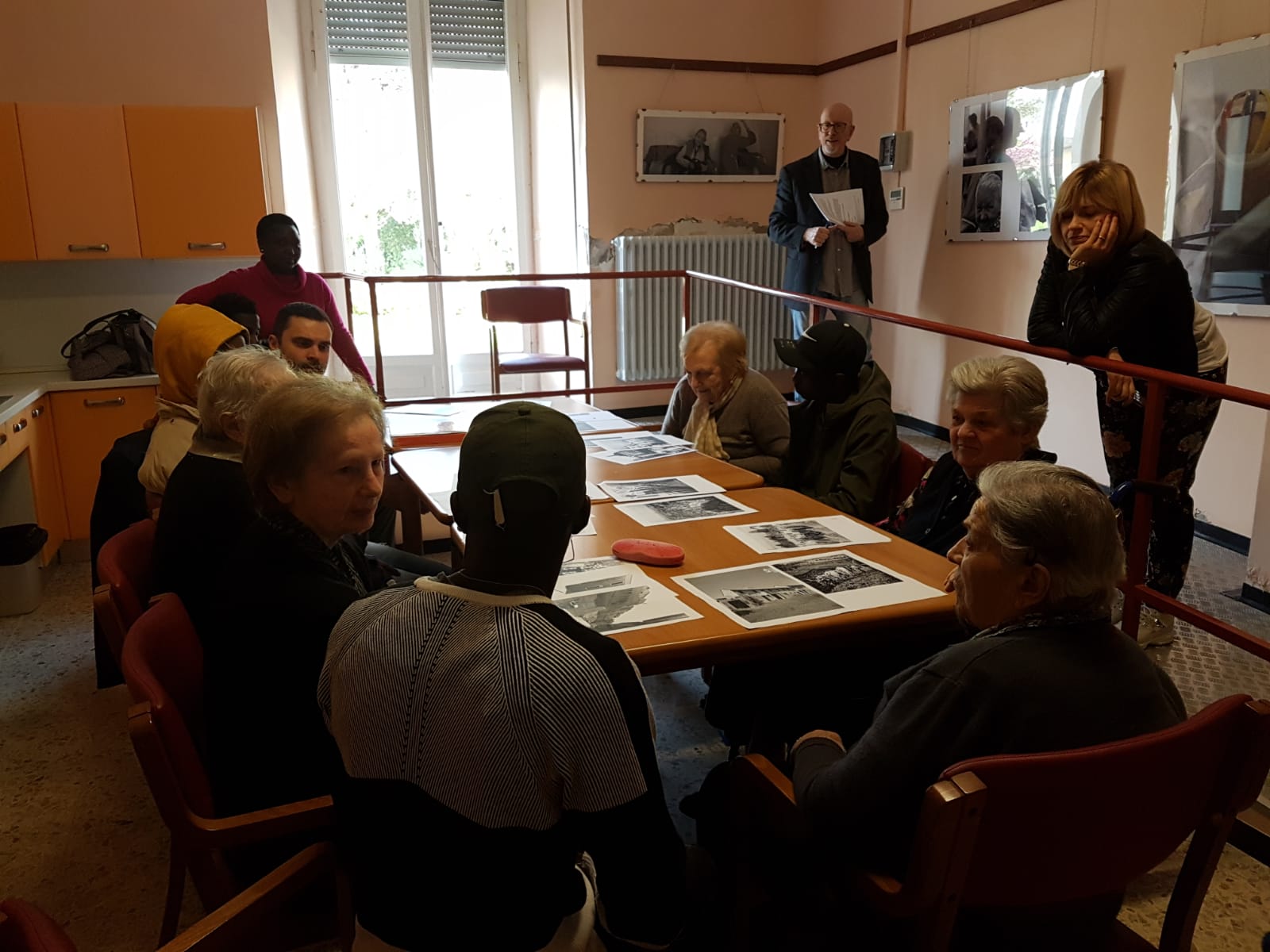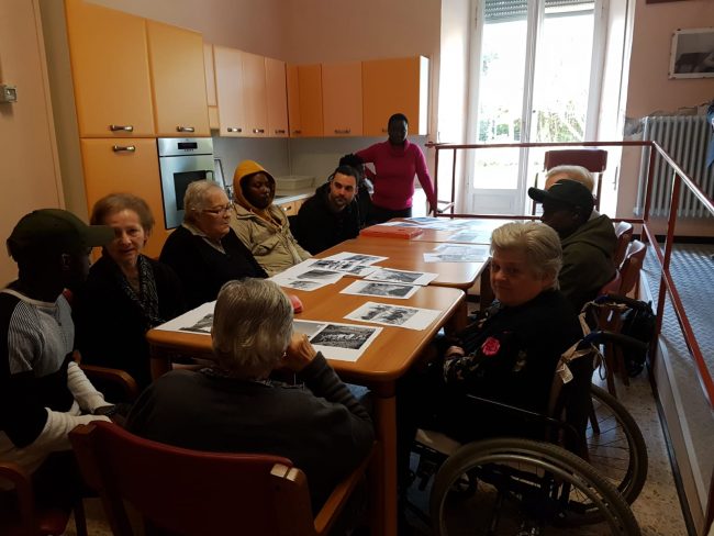 I richiedenti asilo fanno parte del progetto Siproimi (ex Sprar) denominato “Ancona Provincia d’Asilo”, gestito dall’Azienda Servizi alla Persona e di cui il Comune di Jesi ne è titolare. Il progetto si svolge nei locali della casa di riposo di Via Gramsci e prevede attività quali il racconto verbale di storie di vita vissuta attraverso l’ausilio di immagini e materiale fotografico, laboratori di cucina attraverso lo scambio di ricette, dei procedimenti, della preparazione e degli assaggi in clima di convivialità, volte a creare una relazione tra i beneficiari e gli ospiti. Nel corso del primo incontro, dopo un primo momento di presentazione e conoscenza reciproca, gli anziani hanno raccontato le loro storie personali con il supporto di immagini storiche. I beneficiari hanno visto e ascoltato storie di difficoltà economiche dell’Italia del dopoguerra, di partenze e abbandoni dei luoghi di origine in cerca di una vita migliore. Racconti di separazioni, spesso dolorose, che hanno profondamente “segnato” il corso delle loro esistenze. Ma anche di resilienza, di sacrificio e di rivincita. Storie che, anche se nate e vissute in contesti completamente diversi, hanno delle analogie, più di quello che si potrebbe pensare. In questo contesto si è rotto il muro della diffidenza e si è compiuto un primo passo verso l’altro, non più così sconosciuto: due mondi che ora sono sicuramente più vicini!
