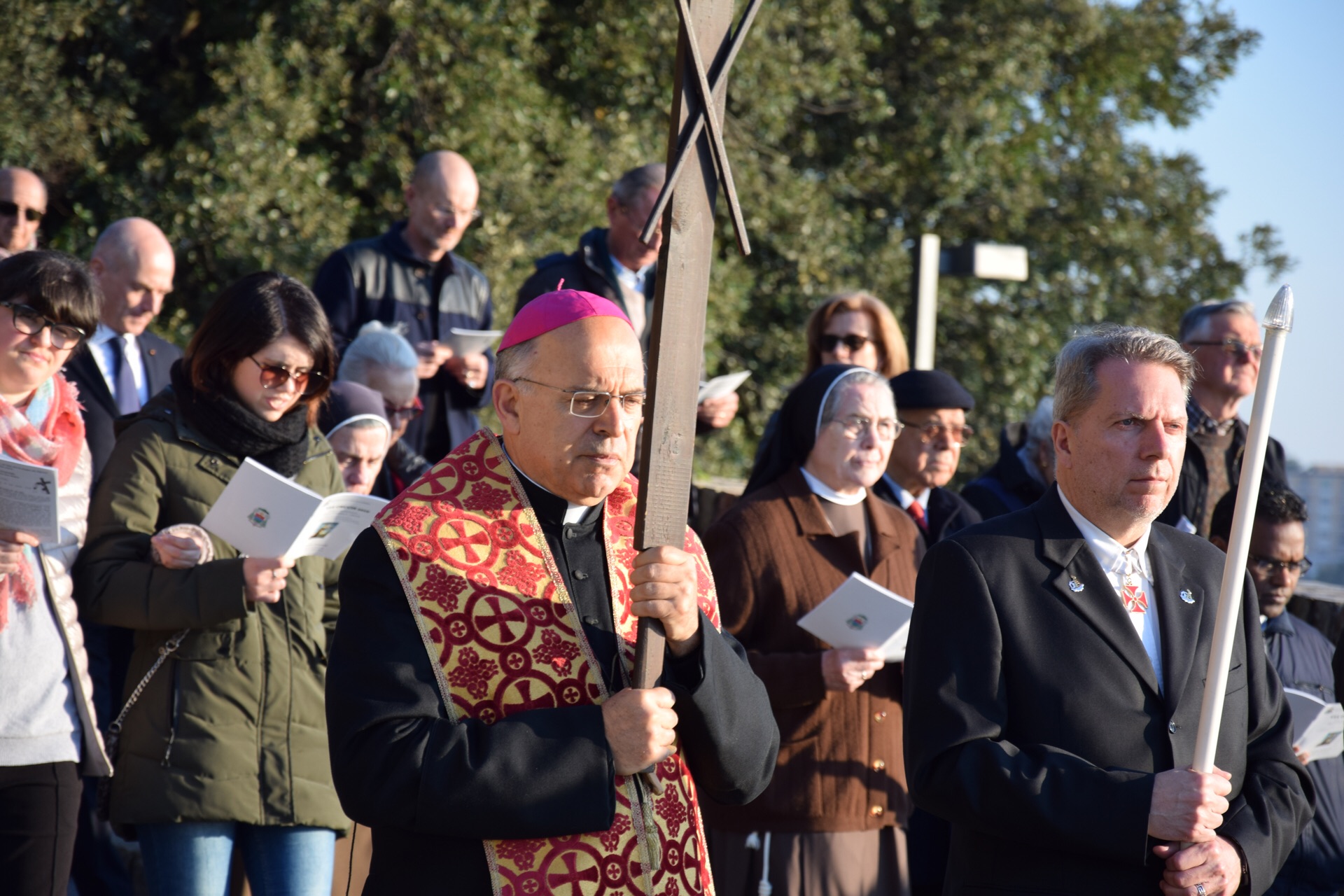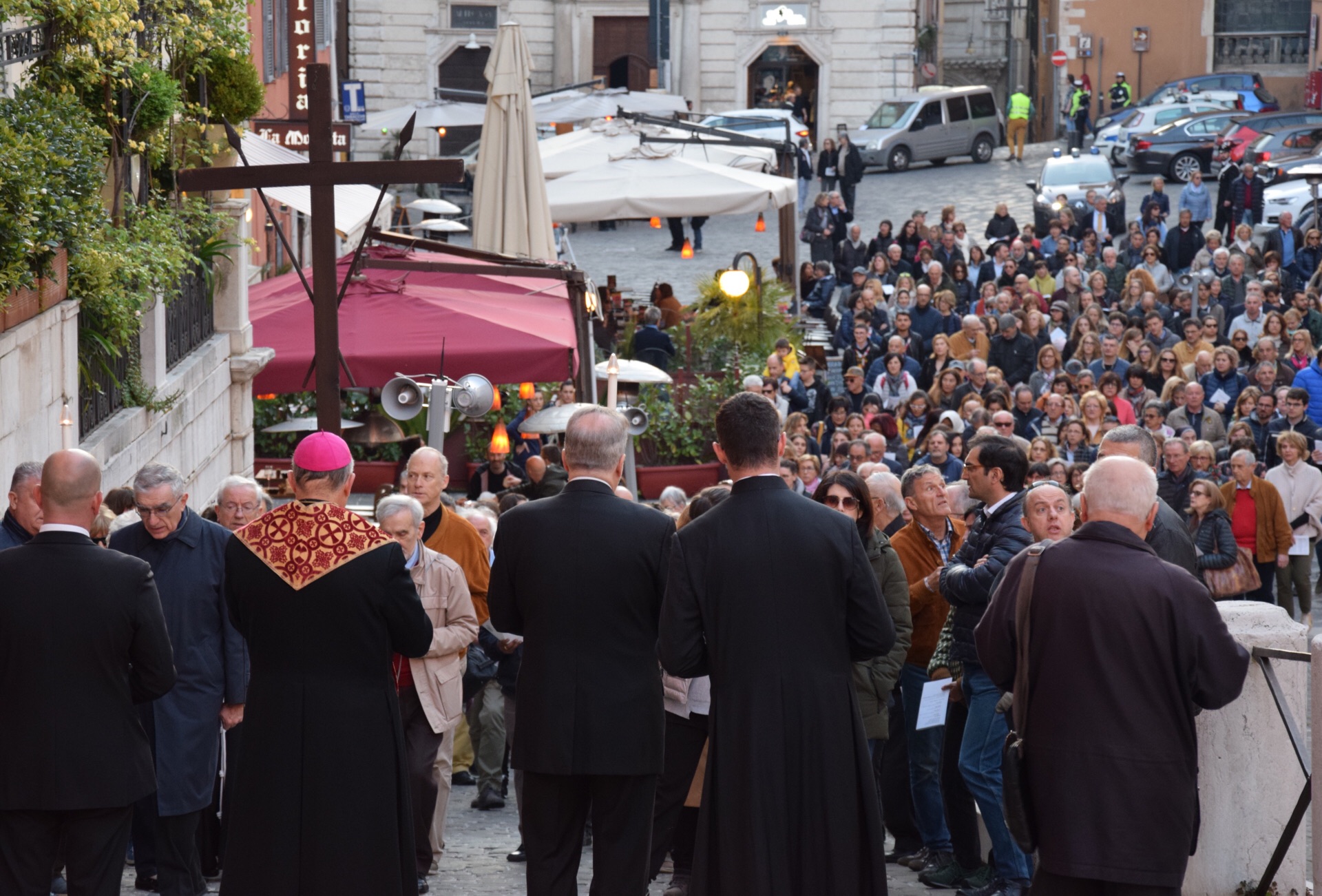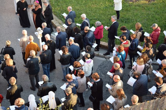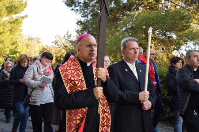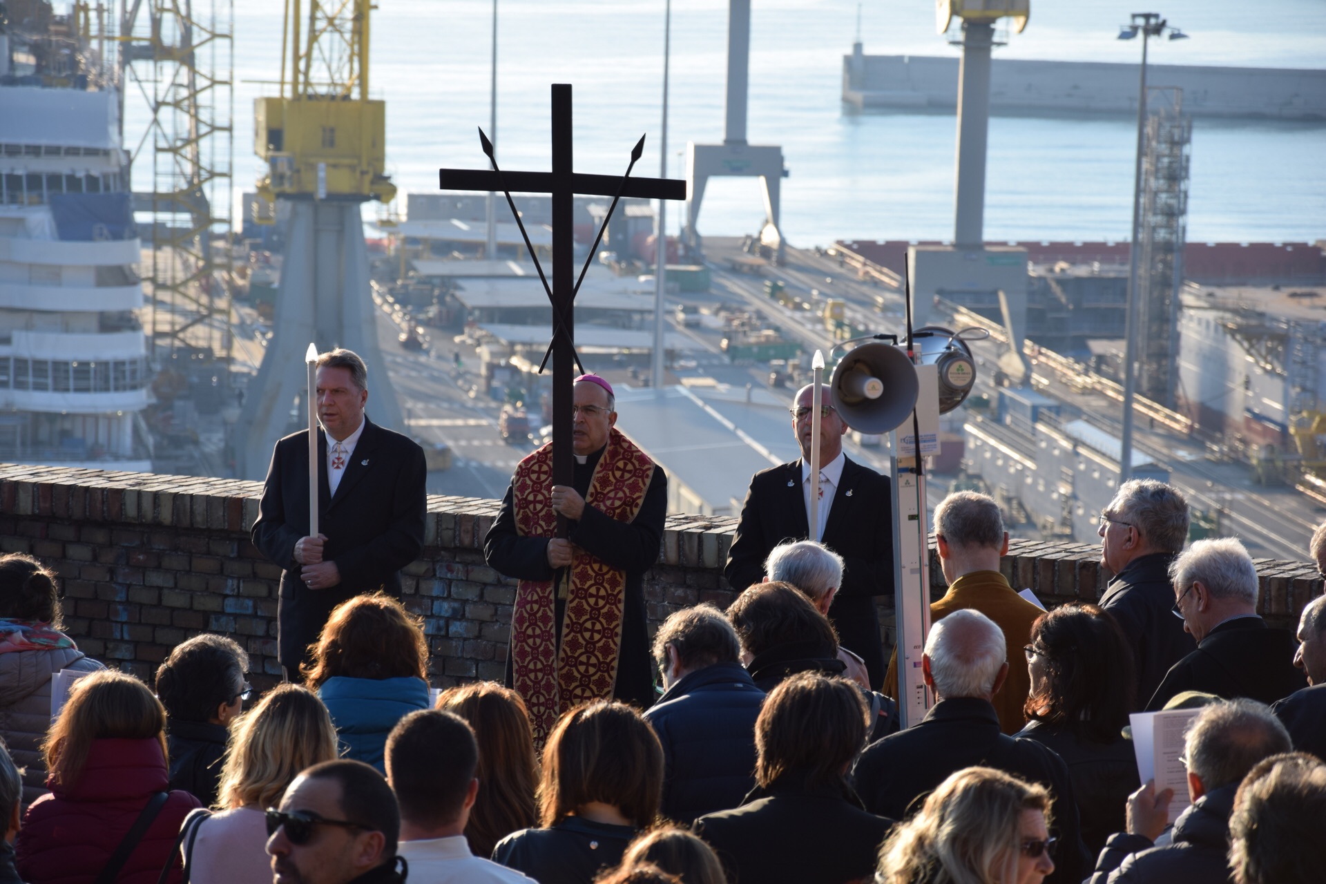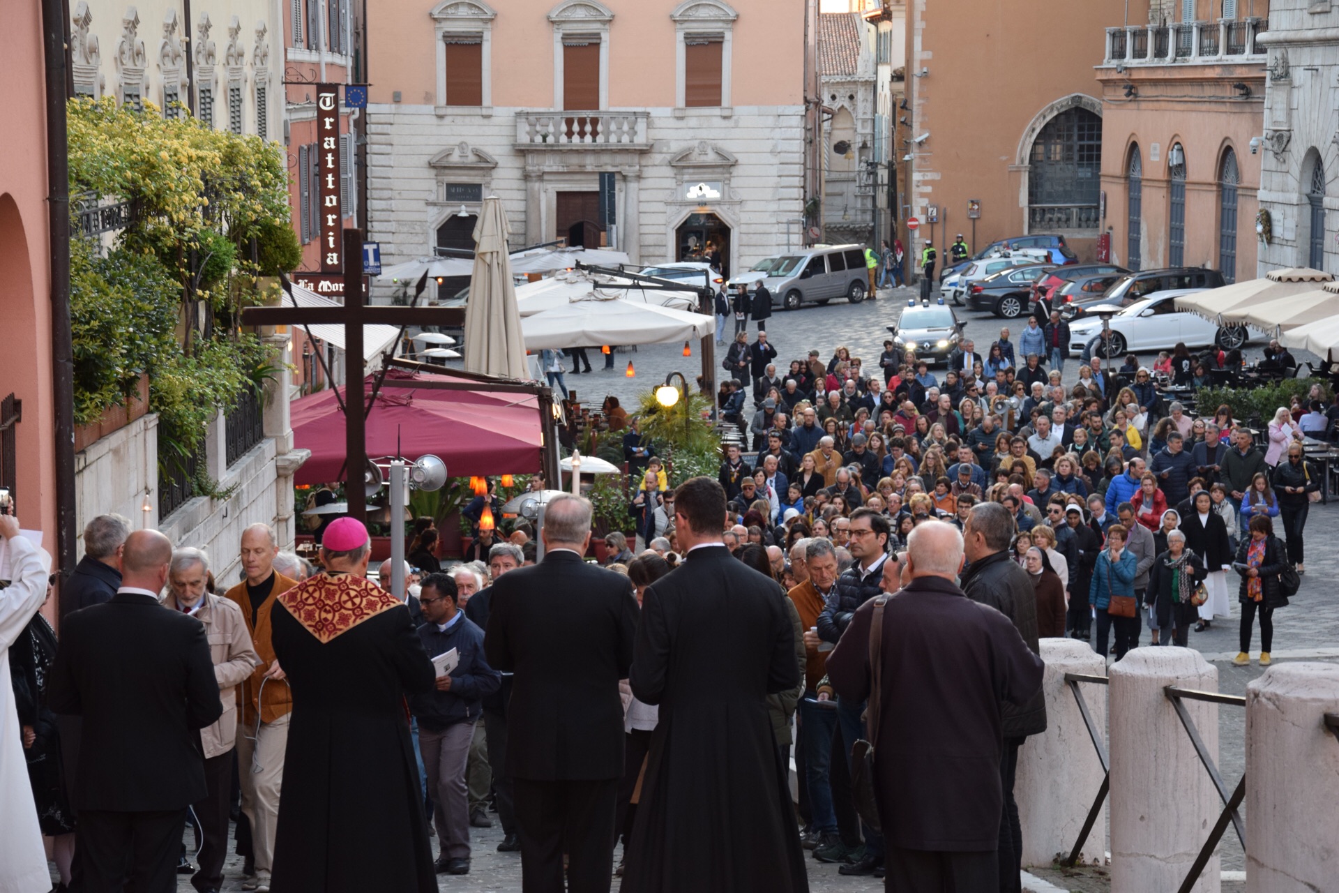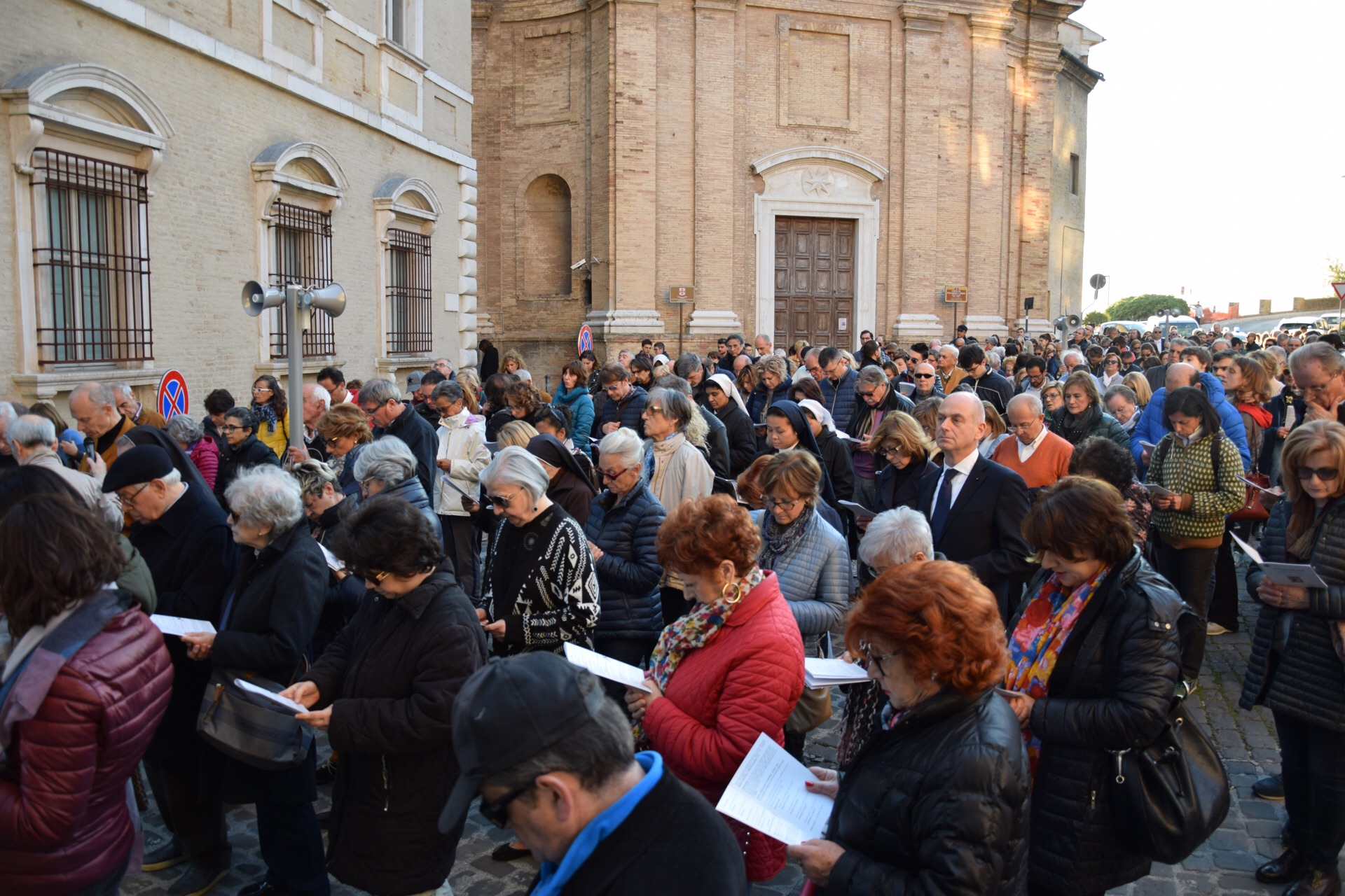 Oggi pomeriggio, a partire dalla 18.30, i fedeli anconetani hanno ripercorso le 14 stazioni della Croce, dal Duomo fino a Piazza del Papa. Le riflessioni sono state curate dai Minori Conventuali di Osimo, dalle Francescane di Cristo Re e dalle Missionarie della Carità di padre Guido, nel ricordo degli 800 anni della partenza di San Francesco da Ancona verso l’Oriente. I riti della Settimana Santa sono stati onorati in tutte le parrocchie della città: alla Sacra Famiglia, la parrocchia dei Salesiani di corso Carlo Alberto con un’altra Via Crucis, a S. Maria Liberatrice di Posatora (con partenza del corteo dalla chiesa antica fino alla chiesa di Cristo Divino Lavoratore), a S. Maria di Loreto aTavernelle, a Santa Maria delle Grazie, a San Gaspare del Bufalo a Brecce Bianche, Sacro Cuore di piazza Salvo d’Acquisto, San Giuseppe Moscati, a Santa Maria Madre di Dio di Torrette e infine alla parrocchia di Pietralacroce. L’arcivescovo Angelo Spina Spina che oggi pomeriggio ha guidato la processione. domenica celebrerà la messa di Pasqua alle 9.30 alla residenza per anziani ‘Recanatesi’ di Osimo; alle 10.30 nella cattedrale San Leopardo sempre ad Osimo ed alle 18 al duomo di San Ciriaco ad Ancona.