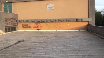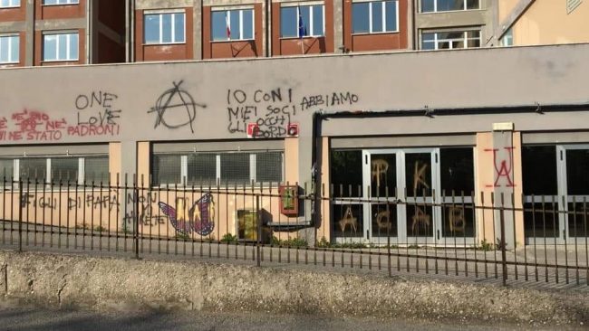 Vicino a simboli anarchici sono comparse scritte del tipo “Siamo soldati senza armi e vincitori senza guerra”. La scoperta dei vandalismi c’è stata questa mattina e la preside Alessandra Rucci ha sfogato la sua amarezza con un lungo post sulla pagina Facebook della scuola. «E’ profonda la mia tristezza nel constatare che nella nostra città ci siano giovani che traggono il loro divertimento nel deturpare muri di edifici pubblici e privati con scritte a cui è anche difficile attribuire un senso. La mia delusione è proporzionale alla cura che dedichiamo quotidianamente a rendere la scuola più bella e più accogliente, a trasmettere un messaggio di cura ai giovani che passa anche attraverso la bellezza. E’ la delusione di un adulto che non ha mai smesso di essere accanto ai giovani e di comunicare loro speranza nel futuro ed energia per cambiare il mondo in meglio. Mi auguro che la nostra città e in particolare le sue zone sensibili, come quelle in prossimità di edifici scolastici ripetutamente oggetto di furti ed atti vandalici, possano essere messe al più presto in sicurezza, come da anni auspichiamo. Se qualcuno pensa che ci arrenderemo ha comunque sbagliato, perché la forza e il senso di appartenenza dei nostri ragazzi sono molto più potenti della debolezza di queste persone che hanno smarrito valori e senso civico». A febbraio, c’era stato un furto con cui i ladri avevano messo le mani su 30 euro. L’obiettivo era probabilmente quello di rubare i soldi della colletta indetta per Lorenzo Farinelli, l’anconetano ex studente del Savoia ucciso due mesi fa da un linfoma.