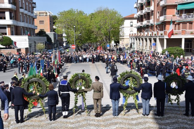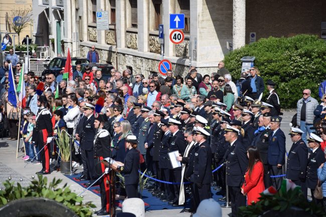 La ricorrenza era più sentita quest’anno, e lo si poteva percepire già dalle prime battute delle celebrazioni al monumento del Passetto, dove forze dell’ordine ed autorità erano tutte schierate per il saluto ai caduti. Dal prefetto di Ancona, Antonio D’Acunto, accompagnato al suo arrivo, puntuale come un orologio svizzero, dall’ammiraglio di divisione Alberto Bianchi, Comandante delle scuole della Marina militare, al presidente del consiglio regionale Antonio Mastrovincenzo, passando, tra gli altri, per il rettore dell’Università Politecnica delle Marche Sauro Longhi, e l’Imam Mohamed Nour Dachan.