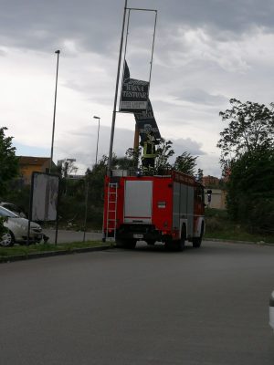 I pompieri hanno rimosso un’insegna al parco commerciale Arcobaleno