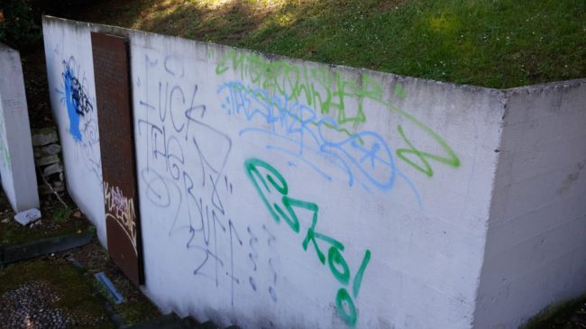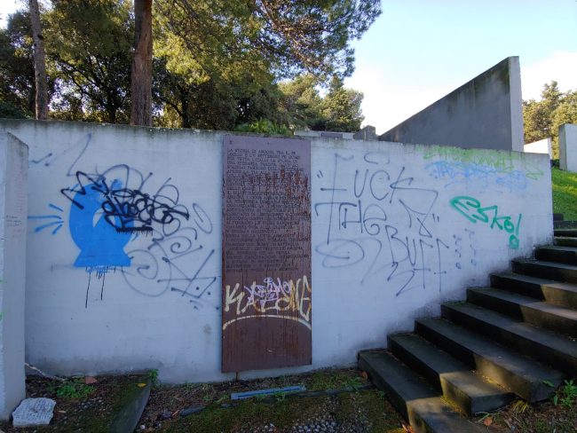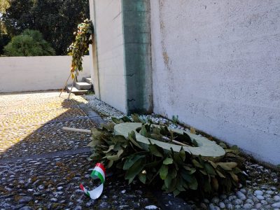 La corona d’alloro vandalizzata