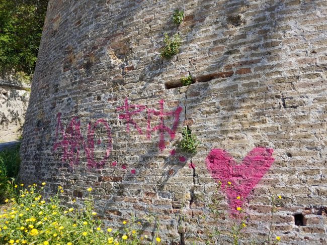 Vandali in azione tra il Pincio e la Cittadella: rotta la corona d’alloro deposta il 25 aprile al Monumento della Resistenza, imbrattate le mura esterne della Cittadella. E’ un bilancio impietoso quello registrato negli ultimi giorni nei parchi della città, presi di mira dai writer. Al Pincio, nel mirino dei vandali c’è finito il complesso dedicato alla Resistenza. Una delle corone deposte dal Comune per ricordare il 25 aprile è stata rotta alla base e scaraventata a terra. Inoltre, quasi tutte le pareti sono coperte da scritte, bestemmie e murales di tutti i colori. Nuovi imbrattamenti si sono aggiunti a quelli di vecchia data, coprendo anche le lastre in bronzo che ricordano i passaggi fondamentali della Resistenza. Ma non è finita qui. Perchè i vandali si sono scatenati anche alla Cittadella. Le mura esterne sono state coperte dalla vernice rosa con scritte a tratti incomprensibili, a tratti riportanti parole come “Love”. Sulle mura sono comparsi anche “Dano” e “rip”, in riferimento probabilmente al ragazzo di 19 anni scomparso a Bologna quasi due mesi fa. L’autore dei vandalismi potrebbe dunque essere un suo amico, diviso tra il ricordo e la volontà di imbrattare un bene comune.