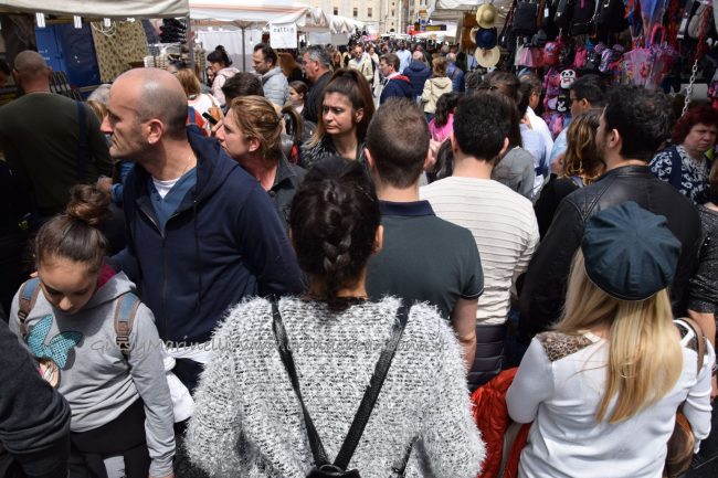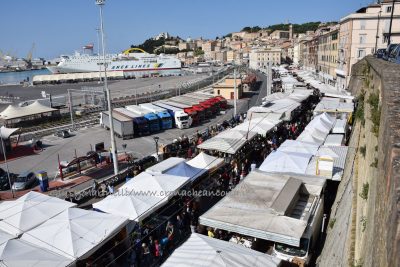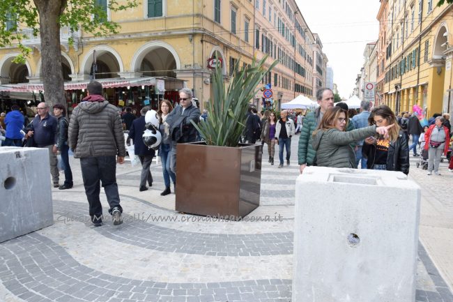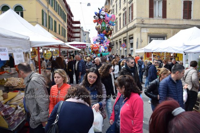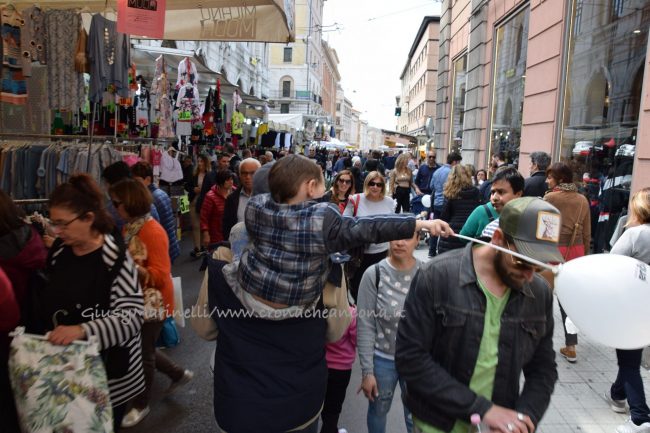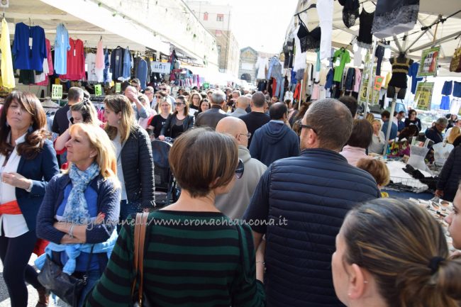 Le nuvole sembravano minacciare una pioggia imminente, ma alla fine è stato il sole a baciare il primo giorno della Fiera di San Ciriaco. Meteo perfetto per uno start in grande stile, oggi (1 maggio), della kermesse che animerà con 438 stand ed eventi ad hoc le vie del centro fino al 4 maggio. Tanta tradizione e qualche novità – come la bancarella con veri denti di squalo o quella delle bottiglie detox per infusi – per una manifestazione capace di attirare ogni anno migliaia di persone da tutta la regione. «C’è stata una grande affluenza fin dal mattino grazie anche ad un meteo non troppo da mare – fa sapere Remo Vigorelli, direttore della società riminese Blu Nautilus che per il 20esimo anno consecutivo gestisce l’organizzazione della fiera – e mi è sembrato ci fossero più persone dello scorso anno, ma è una sensazione. I commercianti, anche quelli dei negozi e dei bar che sono rimasti aperti, si sono detti soddisfatti dell’andamento della giornata». Alcuni degli ambulanti, però, hanno lamentato la scelta della location – tra piazza Cavour lato portici, corso Garibaldi, corso Stamira, piazza Stamira, piazza Pertini per il food, via Castelfidardo, via Marsala, via Leopardi, piazza Repubblica (in parte), piazza Kennedy, largo Sacramento, via dell’Appannaggio e via XXIX Settembre – come Federico Cinti che, dal suo stand Il Ghiottone con prodotti tipici umbri, ha notato come «la scelta di distribuire le bancarelle lungo il viale della Vittoria fosse più azzeccata». Possibilità però scartata negli ultimi due anni per motivi di sicurezza ed antiterrorismo.
