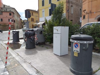 Tra i cassonetti spunta anche un frigorifero