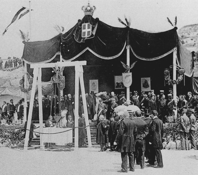 La notizia è che molti di quei reperti, per lo più targhe commemorative, sono ancora nell’edificio centrale del nosocomio, un immobile che assieme a quello adiacente è oggetto di “infiniti” lavori (in forte ritardo) per la realizzazione da parte dell’Asur proprietaria di una residenza protetta per anziani e di una sanitaria assistita oltre che di laboratori di medicina. Altro prezioso ed eterogeneo materiale d’epoca è invece delocalizzato separatamente in vari uffici del Regionale di Torrette. Percorsi pochi metri, sotto il pavimento dell’ingresso principale in largo Cappelli del fu ospedale civile, giace dimenticata la sua prima pietra, contenente una pergamena con dedica e firma degli allora sovrani Vittorio Emanuele III ed Elena, giunti appositamente ad Ancona il 24 giugno 1906 per la cerimonia d’avvio del cantiere. Lungo le pareti delle due rampe di scale che si aprono ad “elle”, ecco le lapidi in pietra, un paio plurisecolari, con scritte in latino, una più piccola con vertice trapezoidale, del 1640, e una più grande di forma orizzontale e testo molto lungo collocata nel 1646. Entrambe dedicate a Costantino Maurodini, mercante greco di Costantinopoli morto ad Ancona nel 1589, il quale lasciò un’eredità alla Confraternita della Misericordia e Morte; le rendite di quel lascito consentirono alla Confraternita di erigere tra il 1645 e il 1676 l’ospedale della Santissima Trinità, che si fuse col precedente, dedicato a Sant’Anna, fondato nel 1567 dal condottiero, anche lui di Costantinopoli, Alessio Lascaris.